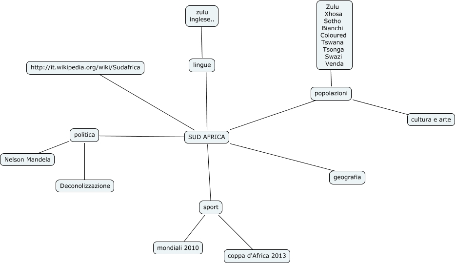 Questa Cmap, creata con IHMC CmapTools, contiene informazioni relative a: GAIA GAU GRECI DELFO, politica ???? Deconolizzazione, lingue ???? zulu inglese.., SUD AFRICA ???? popolazioni, popolazioni ???? Zulu Xhosa Sotho Bianchi Coloured Tswana Tsonga Swazi Venda, politica ???? Nelson Mandela, SUD AFRICA ???? http://it.wikipedia.org/wiki/Sudafrica, SUD AFRICA ???? lingue, SUD AFRICA ???? politica, sport ???? coppa d'Africa 2013, popolazioni ???? cultura e arte, SUD AFRICA ???? geografia, sport ???? mondiali 2010, SUD AFRICA ???? sport