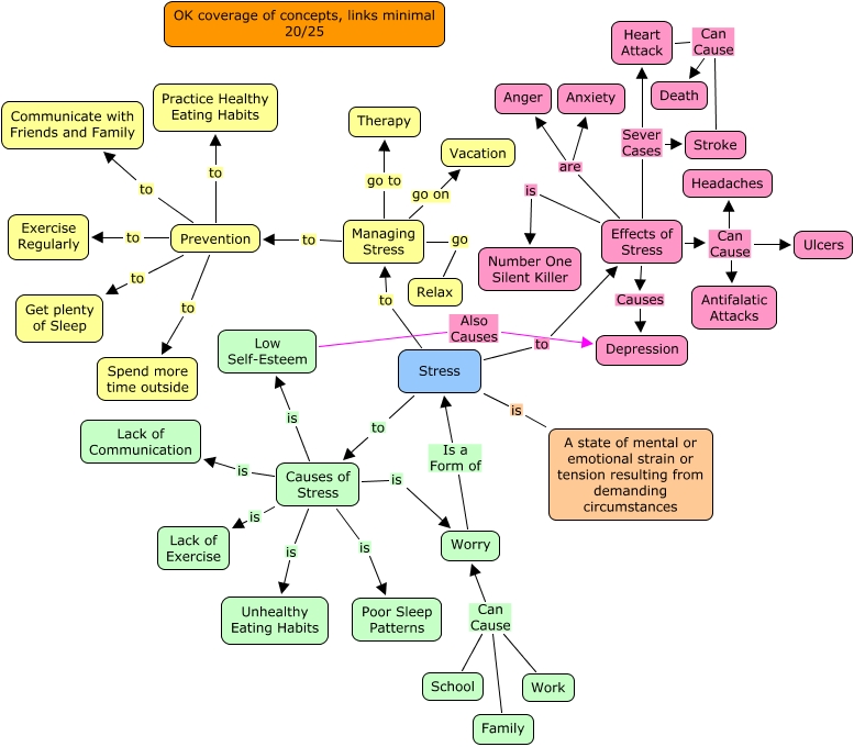 This Concept Map, created with IHMC CmapTools, has information related to: Simpson CH.11 20, Effects of Stress Sever Cases Heart Attack, Effects of Stress are Anxiety, Prevention to Spend more time outside, Stroke Can Cause Death, Causes of Stress is Lack of Exercise, Causes of Stress is Poor Sleep Patterns, Managing Stress go on Vacation, Effects of Stress Can Cause Ulcers, Stress to Managing Stress, Effects of Stress is Number One Silent Killer, Effects of Stress Can Cause Headaches, Prevention to Practice Healthy Eating Habits, Heart Attack Can Cause Death, Stress is A state of mental or emotional strain or tension resulting from demanding circumstances, Stress to Effects of Stress, Worry Is a Form of Stress, Stress to Causes of Stress, Managing Stress go to Therapy, Prevention to Get plenty of Sleep, Prevention to Exercise Regularly