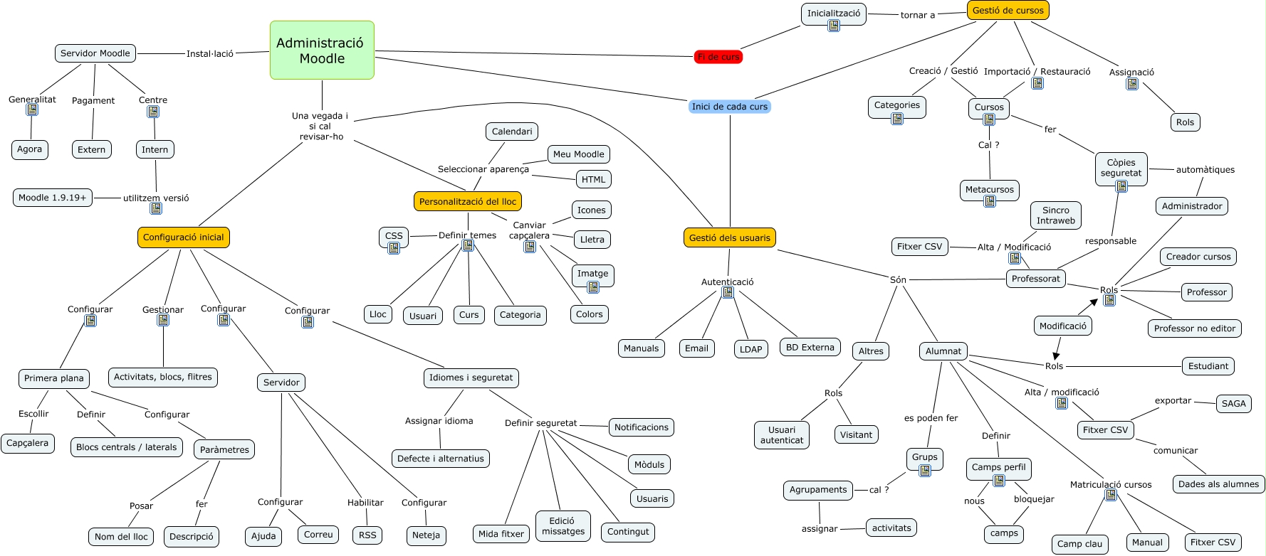 Este Cmap, tiene información relacionada con: Mapa conceptual Administració Moodle Toni Corral.cmap, Servidor Moodle Generalitat Agora, Alumnat Rols Estudiant, Personalització del lloc Definir temes Curs, Idiomes i seguretat Definir seguretat Edició missatges, Modificació Rols Estudiant, Gestió de cursos Importació / Restauració Cursos, Administració Moodle Inici de cada curs Gestió de cursos, Gestió dels usuaris Són Alumnat, Professorat Rols Creador cursos, Servidor Habilitar RSS, Configuració inicial Configurar Servidor, Modificació Rols Creador cursos, Alumnat Matriculació cursos Manual, Gestió dels usuaris Autenticació Manuals, Servidor Configurar Ajuda, Inicialització tornar a Gestió de cursos, Grups es poden fer Alumnat, Primera plana Definir Blocs centrals / laterals, Modificació Rols Administrador, Personalització del lloc Canviar capçalera Colors