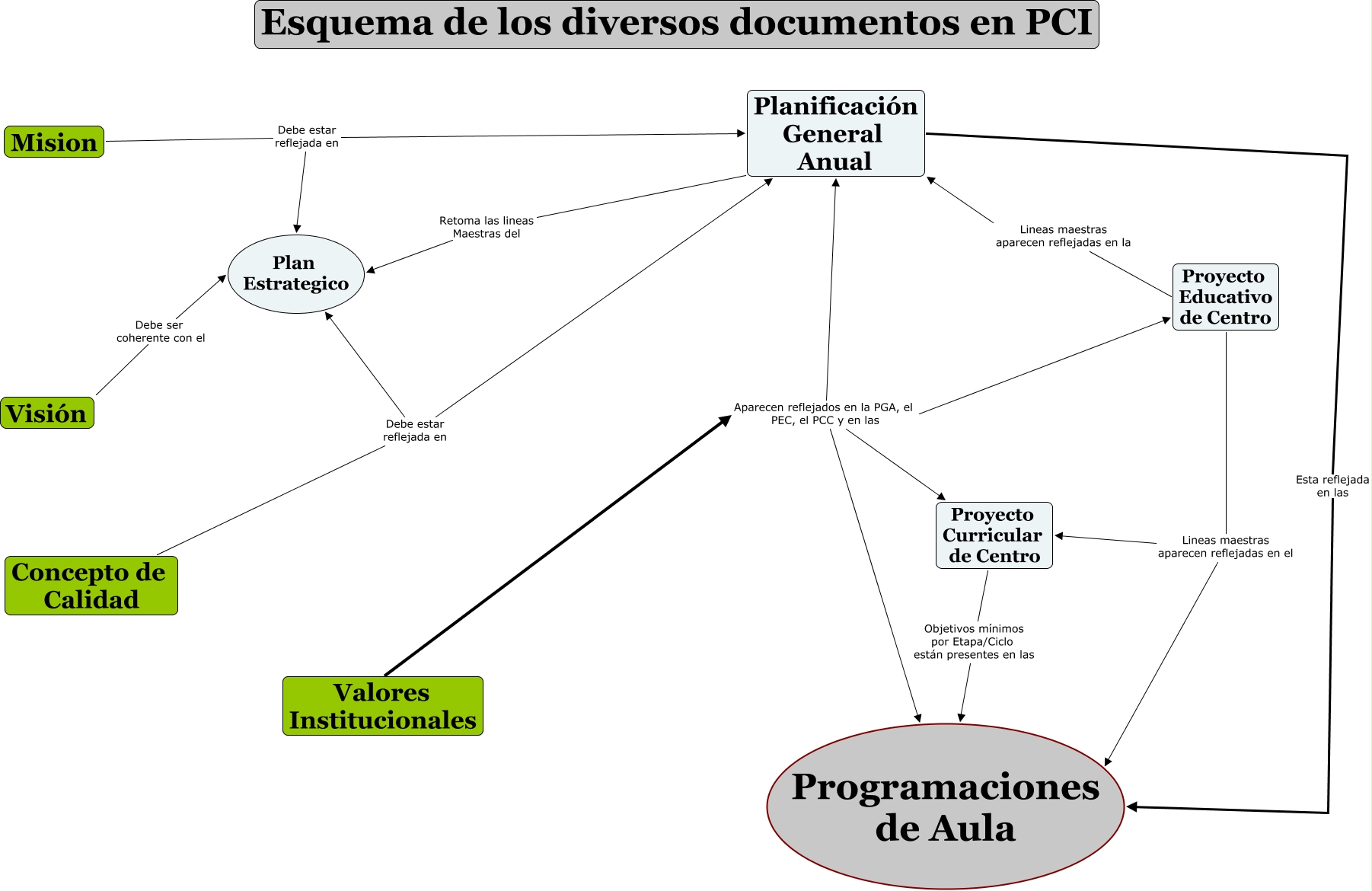 Este Cmap, tiene información relacionada con: Cuáles son las Referencias Estables PCI, Valores Institucionales Aparecen reflejados en la PGA, el PEC, el PCC y en las Proyecto Curricular de Centro, Proyecto Educativo de Centro Lineas maestras aparecen reflejadas en la Planificación General Anual, Mision Debe estar reflejada en Planificación General Anual, Valores Institucionales Aparecen reflejados en la PGA, el PEC, el PCC y en las Planificación General Anual, Proyecto Curricular de Centro Objetivos mínimos por Etapa/Ciclo están presentes en las Programaciones de Aula, Planificación General Anual Retoma las lineas Maestras del Plan Estrategico, Visión Debe ser coherente con el Plan Estrategico, Mision Debe estar reflejada en Plan Estrategico, Concepto de Calidad Debe estar reflejada en Plan Estrategico, Concepto de Calidad Debe estar reflejada en Planificación General Anual, Proyecto Educativo de Centro Lineas maestras aparecen reflejadas en el Programaciones de Aula, Planificación General Anual Esta reflejada en las Programaciones de Aula, Valores Institucionales Aparecen reflejados en la PGA, el PEC, el PCC y en las Programaciones de Aula, Proyecto Educativo de Centro Lineas maestras aparecen reflejadas en el Proyecto Curricular de Centro, Valores Institucionales Aparecen reflejados en la PGA, el PEC, el PCC y en las Proyecto Educativo de Centro