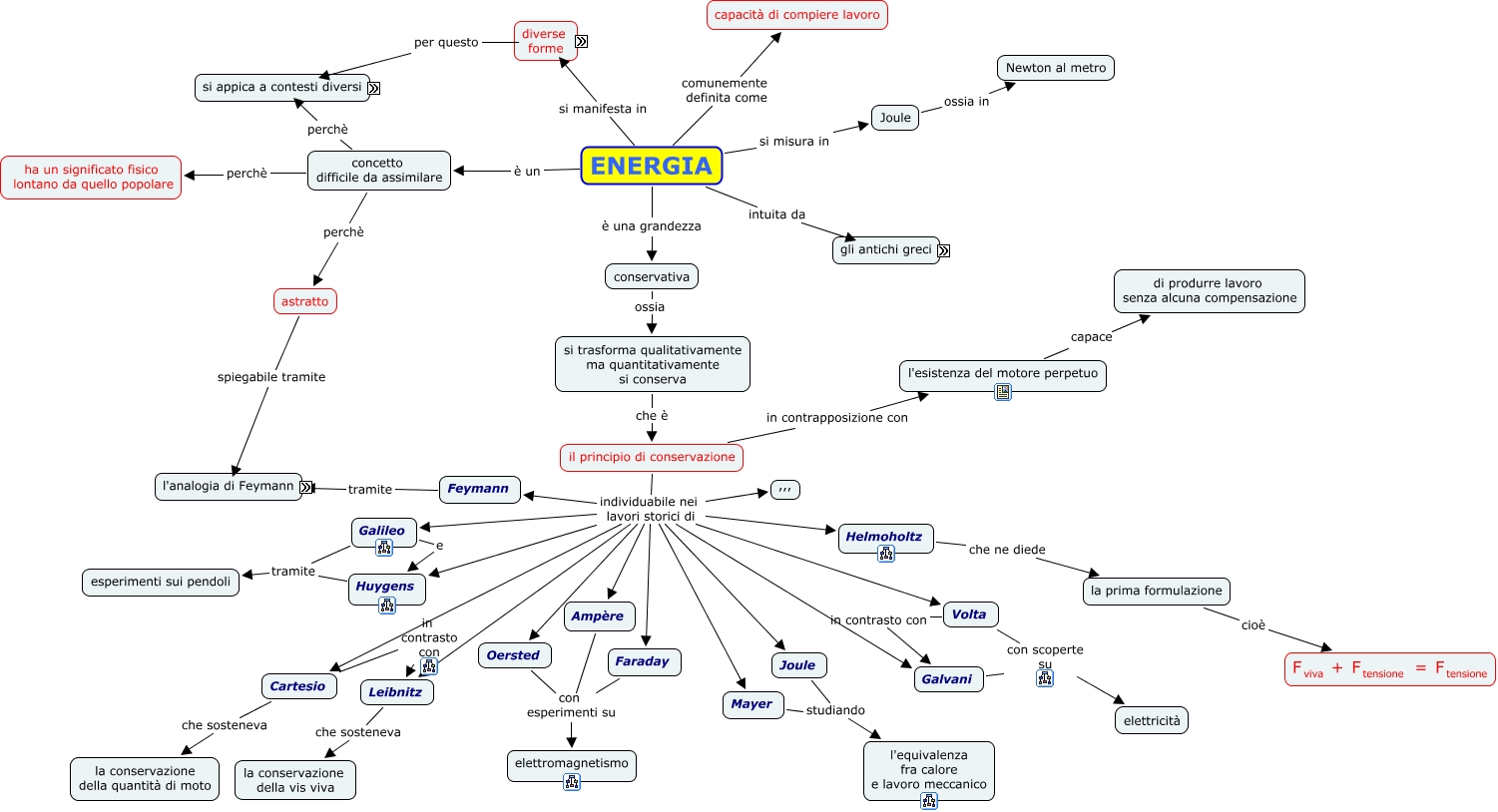 Questa Cmap, creata con IHMC CmapTools, contiene informazioni relative a: energia, viene comunemente usato in contesti molto differenti fra loro in riferimento al cibo, concetto difficile da assimilare perchè ha un significato fisico lontano da quello popolare, ENERGIA è un concetto difficile da assimilare, Galvani con scoperte su elettricità, Cartesio che sosteneva la conservazione della quantità di moto, il principio di conservazione individuabile nei lavori storici di Mayer, Leibnitz che sosteneva la conservazione della vis viva, Joule ossia in Newton al metro, si trasforma qualitativamente ma quantitativamente si conserva che è il principio di conservazione, meccanica distinguibile ancora in cinetica, un "motore primo", o "motore immobile" chiamandolo "energhia"= attività, il principio di conservazione individuabile nei lavori storici di Leibnitz, l'esistenza di una sola sostanza che rimane costante in natura da cui seguono Parmenide, Eraclito con l'eterno divenire, analogia di Feymann da accostare ad una spiegazione teorica, conservativa ossia si trasforma qualitativamente ma quantitativamente si conserva, il principio di conservazione individuabile nei lavori storici di Cartesio, ENERGIA intuita da gli antichi, il principio di conservazione individuabile nei lavori storici di Huygens, Aristotele che introddusse un "motore primo", o "motore immobile"