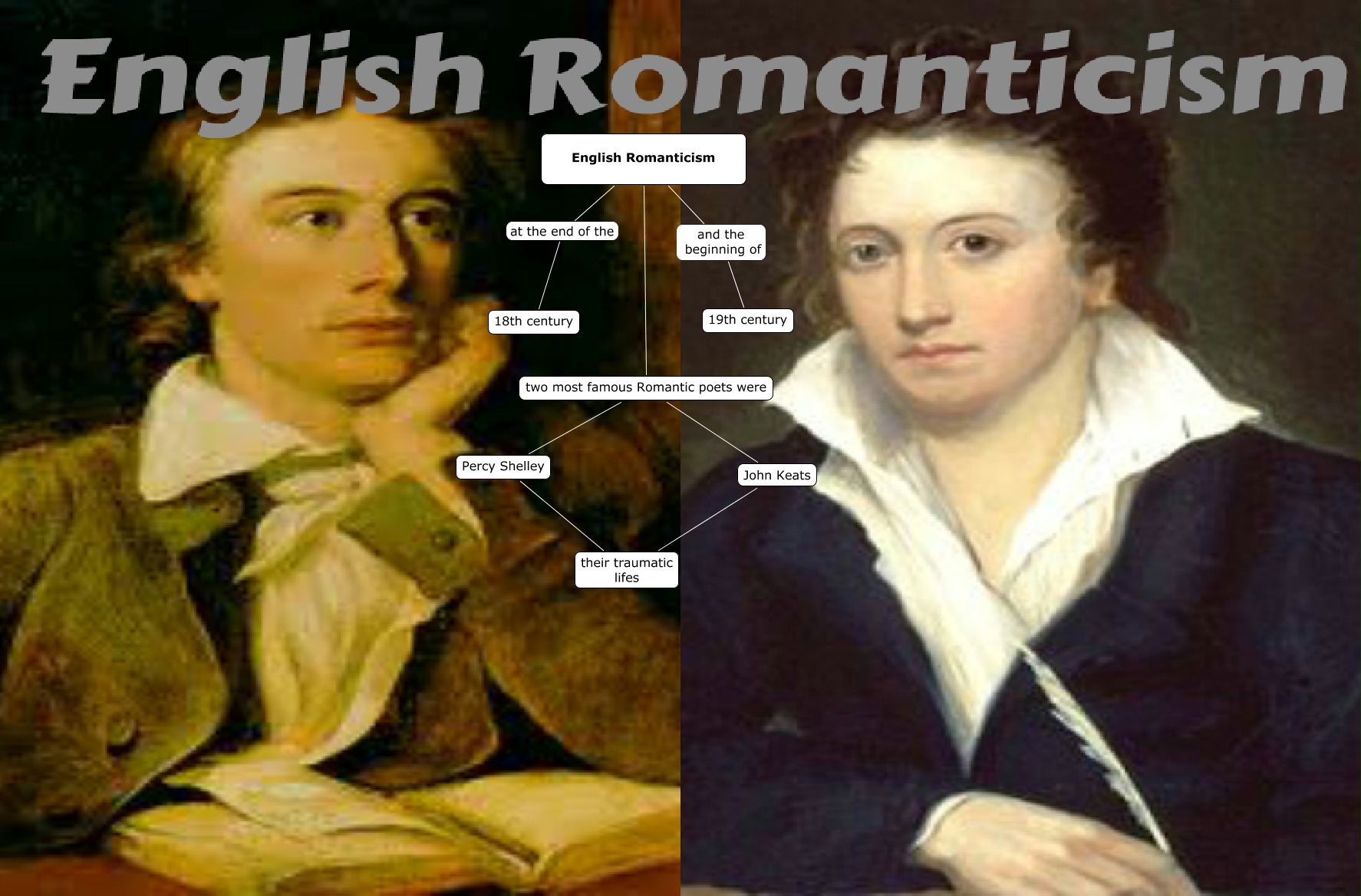 Questa Cmap, creata con IHMC CmapTools, contiene informazioni relative a: English Romanticism, Percy Shelley their traumatic lifes, two most famous Romantic poets were John Keats, John Keats their traumatic lifes, two most famous Romantic poets were Percy Shelley, English Romanticism two most famous Romantic poets were, English Romanticism and the beginning of 19th century, English Romanticism at the end of the 18th century