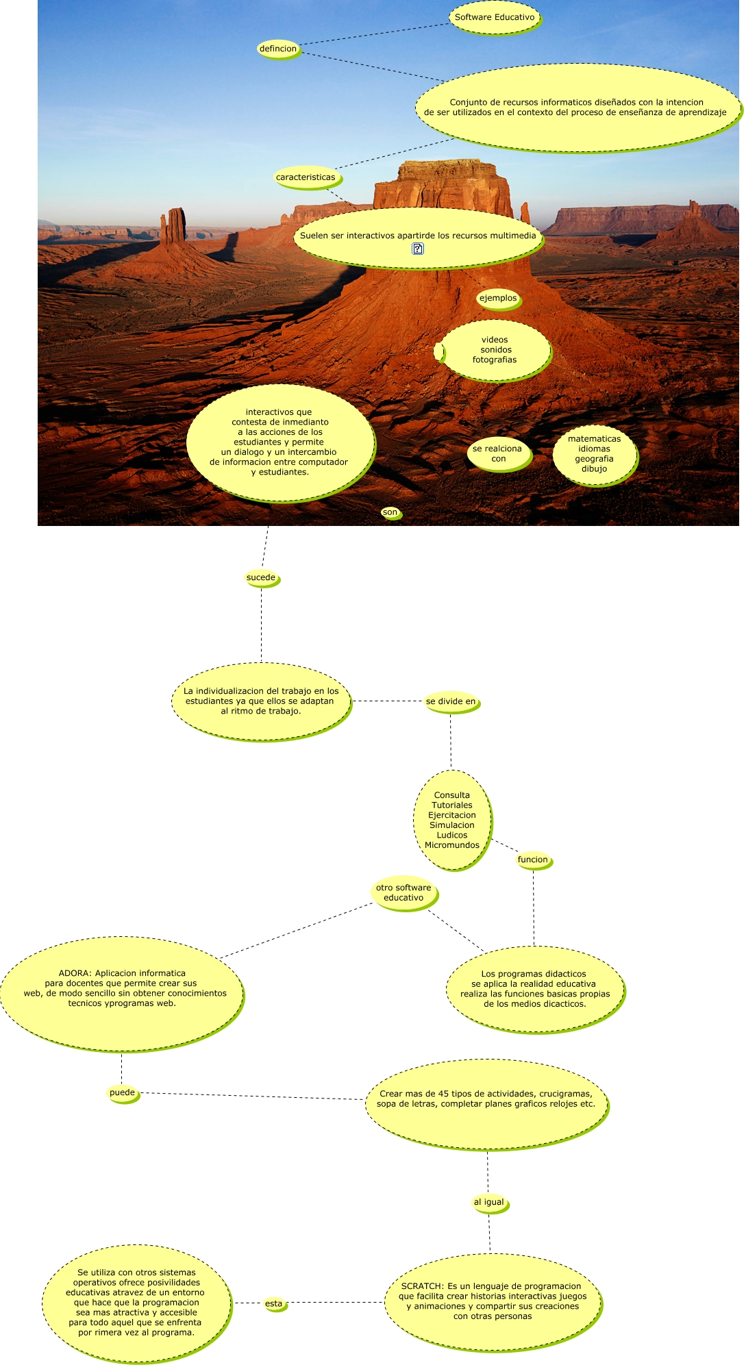 Este Cmap, tiene información relacionada con: integradora fernanda karla, La individualizacion del trabajo en los estudiantes ya que ellos se adaptan al ritmo de trabajo. se divide en Consulta Tutoriales Ejercitacion Simulacion Ludicos Micromundos, Conjunto de recursos informaticos diseñados con la intencion de ser utilizados en el contexto del proceso de enseñanza de aprendizaje caracteristicas ????, matematicas idiomas geografia dibujo son interactivos que contesta de inmedianto a las acciones de los estudiantes y permite un dialogo y un intercambio de informacion entre computador y estudiantes., Suelen ser interactivos apartirde los recursos multimedia ejemplos, Software Educativo defincion Conjunto de recursos informaticos diseñados con la intencion de ser utilizados en el contexto del proceso de enseñanza de aprendizaje, se realciona con matematicas idiomas geografia dibujo, ADORA: Aplicacion informatica para docentes que permite crear sus web, de modo sencillo sin obtener conocimientos tecnicos yprogramas web. puede Crear mas de 45 tipos de actividades, crucigramas, sopa de letras, completar planes graficos relojes etc., SCRATCH: Es un lenguaje de programacion que facilita crear historias interactivas juegos y animaciones y compartir sus creaciones con otras personas esta Se utiliza con otros sistemas operativos ofrece posivilidades educativas atravez de un entorno que hace que la programacion sea mas atractiva y accesible para todo aquel que se enfrenta por rimera vez al programa., interactivos que contesta de inmedianto a las acciones de los estudiantes y permite un dialogo y un intercambio de informacion entre computador y estudiantes. sucede La individualizacion del trabajo en los estudiantes ya que ellos se adaptan al ritmo de trabajo., Consulta Tutoriales Ejercitacion Simulacion Ludicos Micromundos funcion Los programas didacticos se aplica la realidad educativa realiza las funciones basicas propias de los medios dicacticos., Los programas didacticos se aplica la realidad educativa realiza las funciones basicas propias de los medios dicacticos. otro software educativo ADORA: Aplicacion informatica para docentes que permite crear sus web, de modo sencillo sin obtener conocimientos tecnicos yprogramas web., Crear mas de 45 tipos de actividades, crucigramas, sopa de letras, completar planes graficos relojes etc. al igual SCRATCH: Es un lenguaje de programacion que facilita crear historias interactivas juegos y animaciones y compartir sus creaciones con otras personas