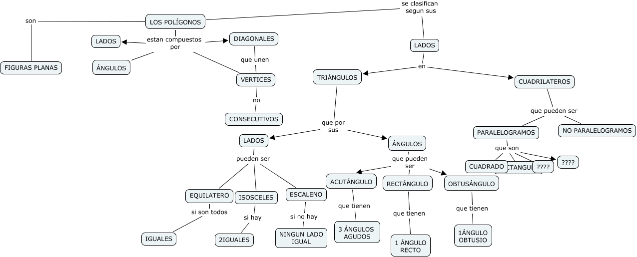 Este Cmap, tiene información relacionada con: Ç(, PARALELOGRAMOS que son ????, ÁNGULOS que pueden ser OBTUSÁNGULO, LADOS en TRIÁNGULOS, PARALELOGRAMOS que son RECTANGULO, ISOSCELES si hay 2IGUALES, CUADRILATEROS que pueden ser NO PARALELOGRAMOS, TRIÁNGULOS que por sus LADOS, RECTÁNGULO que tienen 1 ÁNGULO RECTO, LOS POLÍGONOS se clasifican segun sus LADOS, ÁNGULOS que pueden ser RECTÁNGULO, EQUILATERO si son todos IGUALES, LOS POLÍGONOS son FIGURAS PLANAS, CUADRILATEROS que pueden ser PARALELOGRAMOS, ÁNGULOS que pueden ser ACUTÁNGULO, DIAGONALES que unen VERTICES, TRIÁNGULOS que por sus ÁNGULOS, LADOS pueden ser ISOSCELES, LOS POLÍGONOS estan compuestos por ÁNGULOS, LADOS pueden ser EQUILATERO, PARALELOGRAMOS que son ????