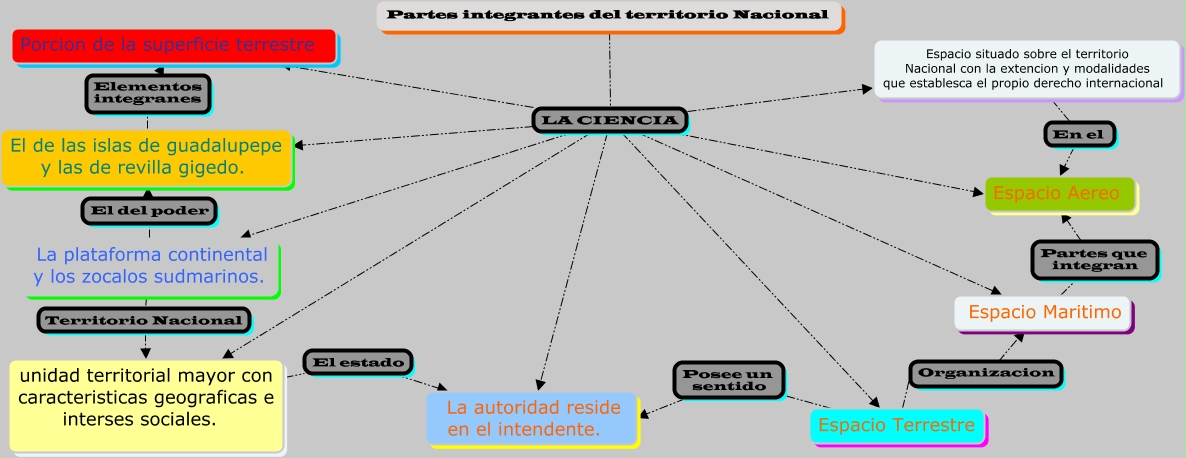 Este Cmap, tiene información relacionada con: Organizadores Graficos-2, Partes integrantes del territorio Nacional Territorio Nacional La plataforma continental y los zocalos sudmarinos., El de las islas de guadalupepe y las de revilla gigedo. Elementos integranes Porcion de la superficie terrestre, Partes integrantes del territorio Nacional Territorio Nacional Espacio Maritimo, Espacio Terrestre Organizacion Espacio Maritimo, Partes integrantes del territorio Nacional Territorio Nacional Espacio Aereo, Partes integrantes del territorio Nacional Territorio Nacional La autoridad reside en el intendente., Espacio situado sobre el territorio Nacional con la extencion y modalidades que establesca el propio derecho internacional En el Espacio Aereo, Espacio Terrestre Posee un sentido La autoridad reside en el intendente., Espacio Maritimo Partes que integran Espacio Aereo, La plataforma continental y los zocalos sudmarinos. El del poder El de las islas de guadalupepe y las de revilla gigedo., unidad territorial mayor con caracteristicas geograficas e interses sociales. El estado La autoridad reside en el intendente., Partes integrantes del territorio Nacional Territorio Nacional Espacio Terrestre, Partes integrantes del territorio Nacional Territorio Nacional El de las islas de guadalupepe y las de revilla gigedo., La plataforma continental y los zocalos sudmarinos. Territorio Nacional unidad territorial mayor con caracteristicas geograficas e interses sociales., Partes integrantes del territorio Nacional Territorio Nacional Espacio situado sobre el territorio Nacional con la extencion y modalidades que establesca el propio derecho internacional, Partes integrantes del territorio Nacional Territorio Nacional Porcion de la superficie terrestre, Partes integrantes del territorio Nacional Territorio Nacional unidad territorial mayor con caracteristicas geograficas e interses sociales.