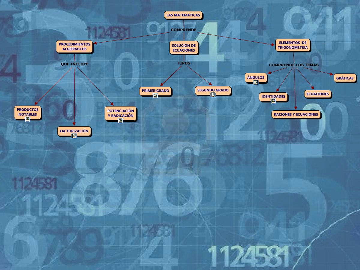 Este Cmap, tiene información relacionada con: LAS MATEMATICAS, PROCEDIMIENTOS ALGEBRAICOS QUE INCLUYE FACTORIZACIÓN, PROCEDIMIENTOS ALGEBRAICOS QUE INCLUYE FACTORIZACIÓN, PRODUCTOS NOTABLES QUE INCLUYE POTENCIACIÓN Y RADICACIÓN, LAS MATEMATICAS COMPRENDE ELEMENTOS DE TRIGONOMETRIA, LAS MATEMATICAS COMPRENDE PROCEDIMIENTOS ALGEBRAICOS, ELEMENTOS DE TRIGONOMETRIA COMPRENDE LOS TEMAS GRÁFICAS, PROCEDIMIENTOS ALGEBRAICOS QUE INCLUYE POTENCIACIÓN Y RADICACIÓN, ELEMENTOS DE TRIGONOMETRIA COMPRENDE LOS TEMAS ÁNGULOS, ELEMENTOS DE TRIGONOMETRIA COMPRENDE LOS TEMAS RACIONES Y ECUACIONES, SOLUCIÓN DE ECUACIONES TIPOS PRIMER GRADO, PROCEDIMIENTOS ALGEBRAICOS QUE INCLUYE POTENCIACIÓN Y RADICACIÓN, PROCEDIMIENTOS ALGEBRAICOS QUE INCLUYE FACTORIZACIÓN, SOLUCIÓN DE ECUACIONES TIPOS SEGUNDO GRADO, FACTORIZACIÓN QUE INCLUYE POTENCIACIÓN Y RADICACIÓN, PRIMER GRADO TIPOS SEGUNDO GRADO, FACTORIZACIÓN QUE INCLUYE PRODUCTOS NOTABLES, SOLUCIÓN DE ECUACIONES COMPRENDE ELEMENTOS DE TRIGONOMETRIA, PROCEDIMIENTOS ALGEBRAICOS QUE INCLUYE PRODUCTOS NOTABLES, PROCEDIMIENTOS ALGEBRAICOS QUE INCLUYE FACTORIZACIÓN, PRODUCTOS NOTABLES QUE INCLUYE FACTORIZACIÓN