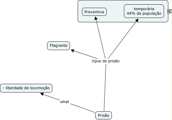 Esse mapa conceitual, produzido no IHMC CmapTools, tem a informação relacionada a: Restrição de liberdade, Prisão tipos de prisão temporária 44% da população, Prisão what - liberdade de locomoção, Prisão tipos de prisão Flagrante, Prisão tipos de prisão Preventiva