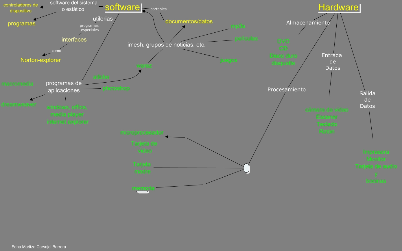 Este Cmap, tiene información relacionada con: hardware software, Hardware Almacenamiento DVD CD Disco duro disquette, utilerias programas especiales interfaces, mp3s imesh, grupos de noticias, etc. software, warez imesh, grupos de noticias, etc. documentos/datos, ????, software programas de aplicaciones dreamweaver, películas imesh, grupos de noticias, etc. documentos/datos, software software del sistema o estático controladores de dispositivo, photoshop programas de aplicaciones dreamweaver, photoshop programas de aplicaciones warez, windows, office, media player internet explorer programas de aplicaciones dreamweaver, Hardware Salida de Datos Impresora Monitor Tarjeta de audio y bocinas, ????, películas imesh, grupos de noticias, etc. software, microprocesador, software portables documentos/datos, Hardware Procesamiento, software programas de aplicaciones warez, juegos imesh, grupos de noticias, etc. documentos/datos, Hardware Entrada de Datos cámara de video Escaner Teclado Ratón