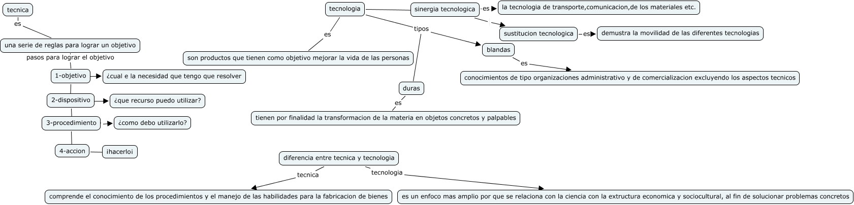 Este Cmap, tiene información relacionada con: PAVARIN, una serie de reglas para lograr un objetivo pasos para lograr el objetivo 1-objetivo, tecnica es una serie de reglas para lograr un objetivo, blandas es conocimientos de tipo organizaciones administrativo y de comercializacion excluyendo los aspectos tecnicos, 2-dispositivo ???? ¿que recurso puedo utilizar?, tecnologia tipos duras, 3-procedimiento ???? ¿como debo utilizarlo?, 1-objetivo ???? ¿cual e la necesidad que tengo que resolver, diferencia entre tecnica y tecnologia tecnica comprende el conocimiento de los procedimientos y el manejo de las habilidades para la fabricacion de bienes, 4-accion ???? ¡hacerlo¡, tecnologia es son productos que tienen como objetivo mejorar la vida de las personas, 1-objetivo ???? 2-dispositivo, diferencia entre tecnica y tecnologia tecnologia es un enfoco mas amplio por que se relaciona con la ciencia con la extructura economica y sociocultural, al fin de solucionar problemas concretos, duras es tienen por finalidad la transformacion de la materia en objetos concretos y palpables, sustitucion tecnologica es demustra la movilidad de las diferentes tecnologias, 2-dispositivo ???? 3-procedimiento, 3-procedimiento ???? 4-accion, tecnologia tipos blandas, sinergia tecnologica es la tecnologia de transporte,comunicacion,de los materiales etc., tecnologia ???? sinergia tecnologica, sinergia tecnologica sustitucion tecnologica