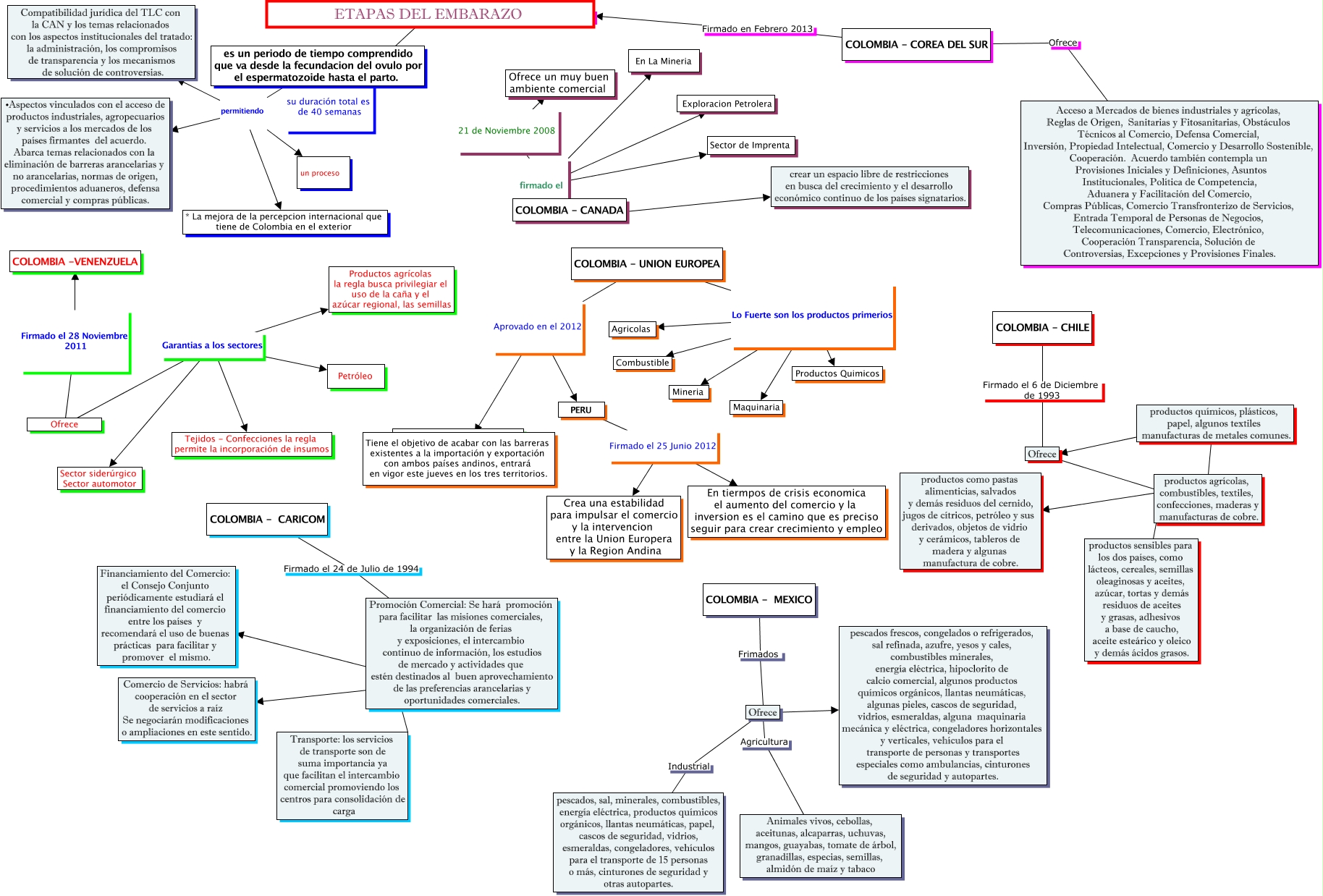 Este Cmap, tiene información relacionada con: Tratados Firmados por Colombia Yohana Tejedor - Janeth Lozano, Ofrece Y productos sensibles para los dos países, como lácteos, cereales, semillas oleaginosas y aceites, azúcar, tortas y demás residuos de aceites y grasas, adhesivos a base de caucho, aceite esteárico y oleico y demás ácidos grasos., Ofrece Garantias a los sectores Tejidos - Confecciones la regla permite la incorporación de insumos, COLOMBIA - CANADA ???? crear un espacio libre de restricciones en busca del crecimiento y el desarrollo económico continuo de los países signatarios., es un periodo de tiempo comprendido que va desde la fecundacion del ovulo por el espermatozoide hasta el parto. permitiendo un proceso, COLOMBIA - CARICOM Firmado el 24 de Julio de 1994 Promoción Comercial: Se hará promoción para facilitar las misiones comerciales, la organización de ferias y exposiciones, el intercambio continuo de información, los estudios de mercado y actividades que estén destinados al buen aprovechamiento de las preferencias arancelarias y oportunidades comerciales., es un periodo de tiempo comprendido que va desde la fecundacion del ovulo por el espermatozoide hasta el parto. permitiendo •Aspectos vinculados con el acceso de productos industriales, agropecuarios y servicios a los mercados de los países firmantes del acuerdo. Abarca temas relacionados con la eliminación de barreras arancelarias y no arancelarias, normas de origen, procedimientos aduaneros, defensa comercial y compras públicas., COLOMBIA - CANADA firmado el Sector de Imprenta, Promoción Comercial: Se hará promoción para facilitar las misiones comerciales, la organización de ferias y exposiciones, el intercambio continuo de información, los estudios de mercado y actividades que estén destinados al buen aprovechamiento de las preferencias arancelarias y oportunidades comerciales. ???? Comercio de Servicios: habrá cooperación en el sector de servicios a raíz Se negociarán modificaciones o ampliaciones en este sentido., productos químicos, plásticos, papel, algunos textiles manufacturas de metales comunes. ???? productos agrícolas, combustibles, textiles, confecciones, maderas y manufacturas de cobre., COLOMBIA - CANADA firmado el Exploracion Petrolera, COLOMBIA - MEXICO Frimados Ofrece, COLOMBIA - UNION EUROPEA Lo Fuerte son los productos primerios Mineria, Ofrece Garantias a los sectores Sector siderúrgico Sector automotor, PERU Firmado el 25 Junio 2012 En tiermpos de crisis economica el aumento del comercio y la inversion es el camino que es preciso seguir para crear crecimiento y empleo, Ofrece Firmado el 28 Noviembre 2011 COLOMBIA -VENENZUELA, Ofrece Y productos como pastas alimenticias, salvados y demás residuos del cernido, jugos de cítricos, petróleo y sus derivados, objetos de vidrio y cerámicos, tableros de madera y algunas manufactura de cobre., COLOMBIA - COREA DEL SUR Firmado en Febrero 2013 ????, COLOMBIA - UNION EUROPEA Lo Fuerte son los productos primerios Agricolas, Promoción Comercial: Se hará promoción para facilitar las misiones comerciales, la organización de ferias y exposiciones, el intercambio continuo de información, los estudios de mercado y actividades que estén destinados al buen aprovechamiento de las preferencias arancelarias y oportunidades comerciales. ???? Financiamiento del Comercio: el Consejo Conjunto periódicamente estudiará el financiamiento del comercio entre los países y recomendará el uso de buenas prácticas para facilitar y promover el mismo., COLOMBIA - COREA DEL SUR Ofrece Acceso a Mercados de bienes industriales y agrícolas, Reglas de Origen, Sanitarias y Fitosanitarias, Obstáculos Técnicos al Comercio, Defensa Comercial, Inversión, Propiedad Intelectual, Comercio y Desarrollo Sostenible, Cooperación. Acuerdo también contempla un Provisiones Iniciales y Definiciones, Asuntos Institucionales, Política de Competencia, Aduanera y Facilitación del Comercio, Compras Públicas, Comercio Transfronterizo de Servicios, Entrada Temporal de Personas de Negocios, Telecomunicaciones, Comercio, Electrónico, Cooperación Transparencia, Solución de Controversias, Excepciones y Provisiones Finales.