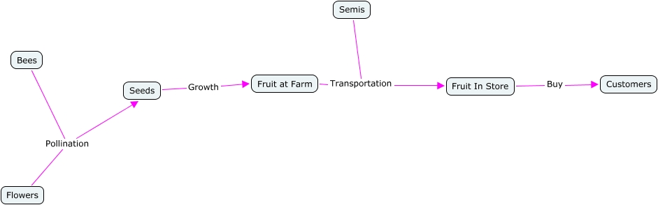 This Concept Map, created with IHMC CmapTools, has information related to: John Deederly Bee CMAP, Seeds Growth Fruit at Farm, Flowers Pollination Seeds, Fruit at Farm Transportation Fruit In Store, Fruit In Store Buy Customers, Bees Pollination Seeds, Semis Transportation Fruit In Store