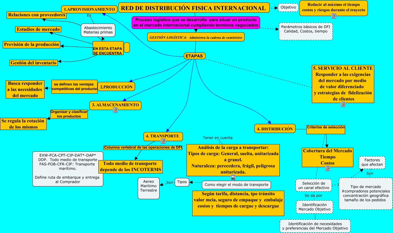 Este Cmap, tiene información relacionada con: decreto, GESTIÓN LOGÍSTICA: Administra la cadena de suministro ETAPAS 4. DISTRIBUCIÓN, Tipos Son Aereo Maritimo Terrestre, 4. DISTRIBUCIÓN Criterios de selección Cobertura del Mercado Tiempo Costos, EN ESTA ETAPA SE ENCUENTRA Abastecimiento Materias primas, RED DE DISTRIBUCIÓN FISICA INTERNACIONAL Proceso logístico que se desarrolla para situar un producto en el mercado internacional cumpliendo terminos negociados GESTIÓN LOGÍSTICA: Administra la cadena de suministro, Selección de un canal efectivo Se da por Identificación Mercado Objetivo, 4. TRANSPORTE Columna vertebral de las operaciones de DFI Todo medio de transporte depende de los INCOTERMS, Identificación Mercado Objetivo ???? Identificación de necesidades y preferencias del Mercado Objetivo, GESTIÓN LOGÍSTICA: Administra la cadena de suministro ETAPAS 4. TRANSPORTE, EN ESTA ETAPA SE ENCUENTRA Relaciones con proveedores, RED DE DISTRIBUCIÓN FISICA INTERNACIONAL Proceso logístico que se desarrolla para situar un producto en el mercado internacional cumpliendo terminos negociados Parámetros básicos de DFI Calidad, Costos, tiempo, EN ESTA ETAPA SE ENCUENTRA Gestión del inventario, Selección de un canal efectivo ???? Factores que afectan, GESTIÓN LOGÍSTICA: Administra la cadena de suministro ETAPAS 1.APROVISIONAMIENTO, RED DE DISTRIBUCIÓN FISICA INTERNACIONAL ???? Objetivo, Como elegir el modo de transporte ???? Tipos, 2.PRODUCCIÓN se definen las ventajas competitivas del producto Busca responder a las necesidades del mercado, 3. ALMACENAMIENTO Organizar y clasificar los productos Se regula la rotación de los mismos, 4. DISTRIBUCIÓN Criterios de selección Selección de un canal efectivo, EN ESTA ETAPA SE ENCUENTRA Estudios de mercado