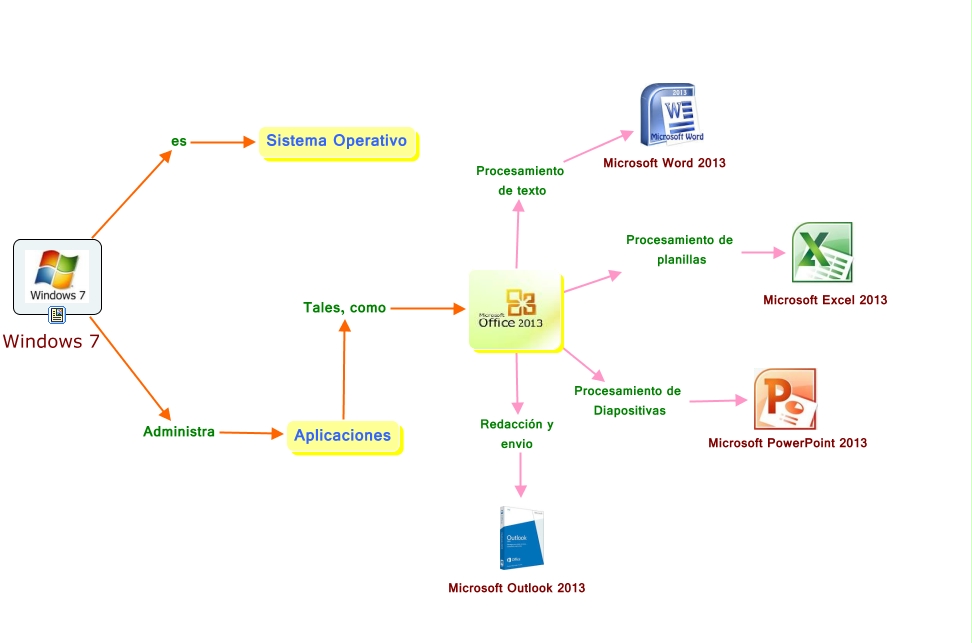 Este Cmap, tiene información relacionada con: windows, es Sistema Operativo, Administra Aplicaciones, Procesamiento de texto, Procesamiento de Diapositivas, Redacción y envio ????, Aplicaciones Tales, como, ???? Microsoft Excel 2013 ????, Windows 7 ????, Microsoft PowerPoint 2013 ????, ???? Microsoft Outlook 2013 ????, Procesamiento de planillas ????, Microsoft Word 2013 ????