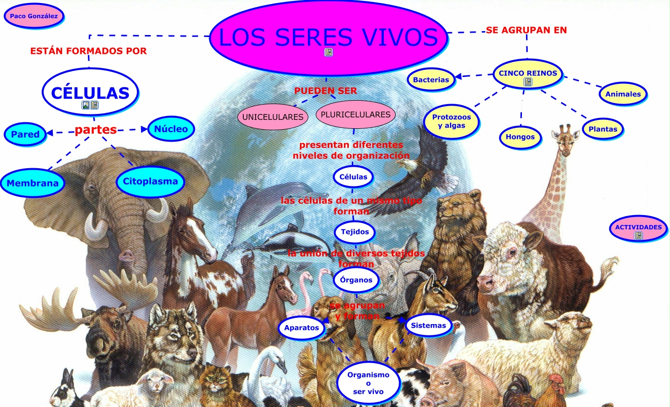 Este Cmap, tiene información relacionada con: lOS SERES VIVOS, LOS SERES VIVOS ESTÁN FORMADOS POR CÉLULAS, CINCO REINOS Protozoos y algas, CINCO REINOS Plantas, CINCO REINOS Bacterias, CINCO REINOS Hongos, PLURICELULARES presentan diferentes niveles de organización Células, LOS SERES VIVOS PUEDEN SER PLURICELULARES, LOS SERES VIVOS PUEDEN SER UNICELULARES, CINCO REINOS Animales, LOS SERES VIVOS SE AGRUPAN EN CINCO REINOS, CÉLULAS partes Citoplasma, CÉLULAS partes Membrana, Órganos se agrupan y forman Sistemas, Sistemas Organismo o ser vivo, CÉLULAS partes Núcleo, Tejidos la unión de diversos tejidos forman Órganos, Células las células de un mismo tipo forman Tejidos, Órganos se agrupan y forman Aparatos, Aparatos Organismo o ser vivo, CÉLULAS partes Pared