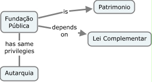 Esse mapa conceitual, produzido no IHMC CmapTools, tem a informação relacionada a: Fundacao Publica, Fundação Pública is Patrimonio, Fundação Pública has same privilegies Autarquia, Fundação Pública depends on Lei Complementar