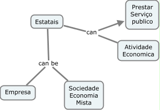 Esse mapa conceitual, produzido no IHMC CmapTools, tem a informação relacionada a: Estatais, Estatais can Atividade Economica, Estatais can be Sociedade Economia Mista, Estatais can be Empresa, Estatais can Prestar Serviço publico