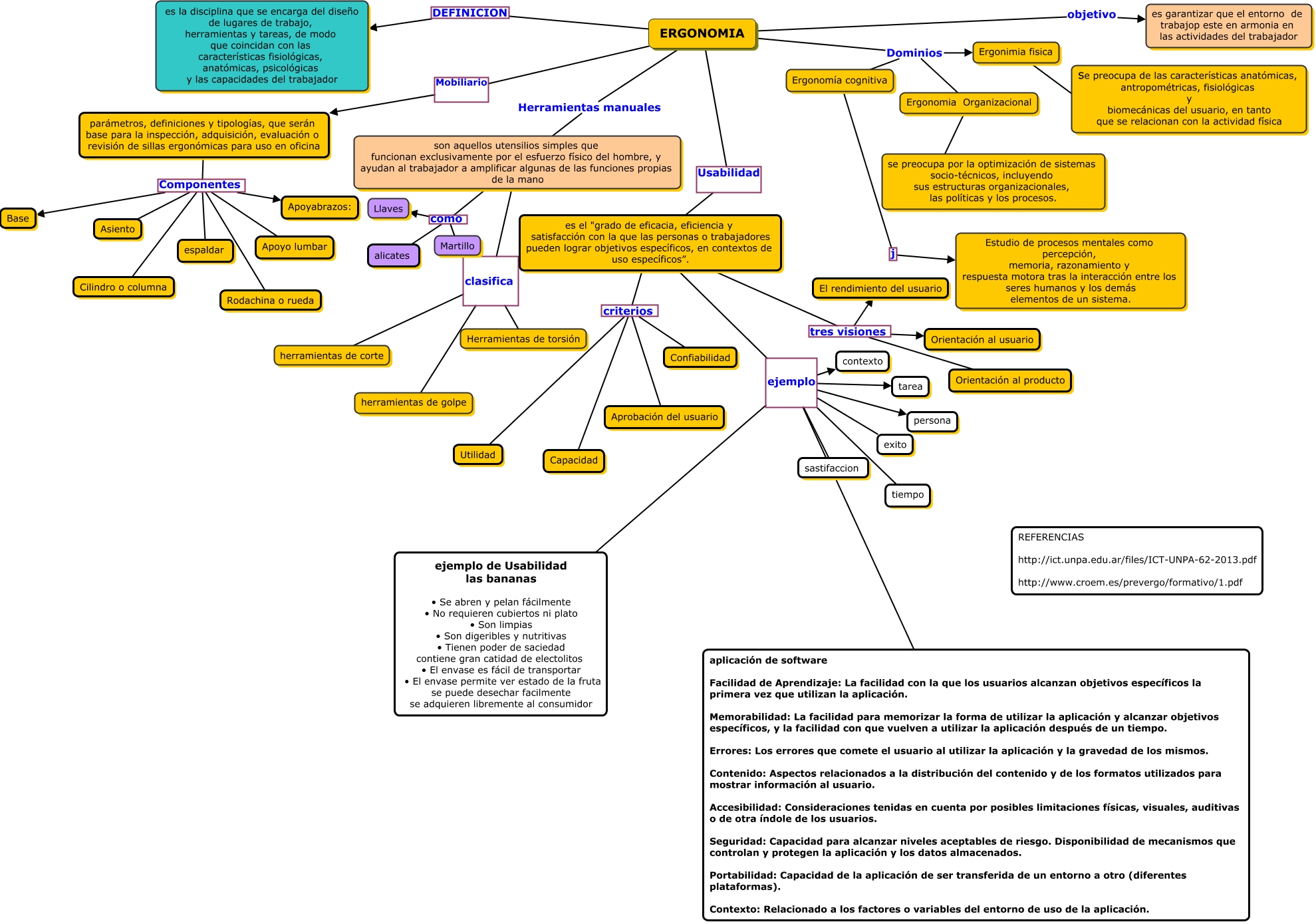 Este Cmap, tiene información relacionada con: MIS DOCUMENTOS, parámetros, definiciones y tipologías, que serán base para la inspección, adquisición, evaluación o revisión de sillas ergonómicas para uso en oficina Componentes Asiento, parámetros, definiciones y tipologías, que serán base para la inspección, adquisición, evaluación o revisión de sillas ergonómicas para uso en oficina Componentes espaldar, parámetros, definiciones y tipologías, que serán base para la inspección, adquisición, evaluación o revisión de sillas ergonómicas para uso en oficina Componentes Apoyo lumbar, es el "grado de eficacia, eficiencia y satisfacción con la que las personas o trabajadores pueden lograr objetivos específicos, en contextos de uso específicos”. ejemplo persona, son aquellos utensilios simples que funcionan exclusivamente por el esfuerzo físico del hombre, y ayudan al trabajador a amplificar algunas de las funciones propias de la mano como alicates, ERGONOMIA DEFINICION es la disciplina que se encarga del diseño de lugares de trabajo, herramientas y tareas, de modo que coincidan con las características fisiológicas, anatómicas, psicológicas y las capacidades del trabajador, son aquellos utensilios simples que funcionan exclusivamente por el esfuerzo físico del hombre, y ayudan al trabajador a amplificar algunas de las funciones propias de la mano clasifica herramientas de corte, parámetros, definiciones y tipologías, que serán base para la inspección, adquisición, evaluación o revisión de sillas ergonómicas para uso en oficina Componentes Base, parámetros, definiciones y tipologías, que serán base para la inspección, adquisición, evaluación o revisión de sillas ergonómicas para uso en oficina Componentes Apoyabrazos:, ERGONOMIA Usabilidad es el "grado de eficacia, eficiencia y satisfacción con la que las personas o trabajadores pueden lograr objetivos específicos, en contextos de uso específicos”., es el "grado de eficacia, eficiencia y satisfacción con la que las personas o trabajadores pueden lograr objetivos específicos, en contextos de uso específicos”. tres visiones El rendimiento del usuario, ERGONOMIA Dominios Ergonomía cognitiva, son aquellos utensilios simples que funcionan exclusivamente por el esfuerzo físico del hombre, y ayudan al trabajador a amplificar algunas de las funciones propias de la mano como Llaves, ERGONOMIA Dominios Ergonomia Organizacional, son aquellos utensilios simples que funcionan exclusivamente por el esfuerzo físico del hombre, y ayudan al trabajador a amplificar algunas de las funciones propias de la mano clasifica herramientas de golpe, es el "grado de eficacia, eficiencia y satisfacción con la que las personas o trabajadores pueden lograr objetivos específicos, en contextos de uso específicos”. tres visiones Orientación al producto, es el "grado de eficacia, eficiencia y satisfacción con la que las personas o trabajadores pueden lograr objetivos específicos, en contextos de uso específicos”. tres visiones Orientación al usuario, es el "grado de eficacia, eficiencia y satisfacción con la que las personas o trabajadores pueden lograr objetivos específicos, en contextos de uso específicos”. ejemplo tiempo, son aquellos utensilios simples que funcionan exclusivamente por el esfuerzo físico del hombre, y ayudan al trabajador a amplificar algunas de las funciones propias de la mano como Martillo, Ergonomía cognitiva j Estudio de procesos mentales como percepción, memoria, razonamiento y respuesta motora tras la interacción entre los seres humanos y los demás elementos de un sistema.