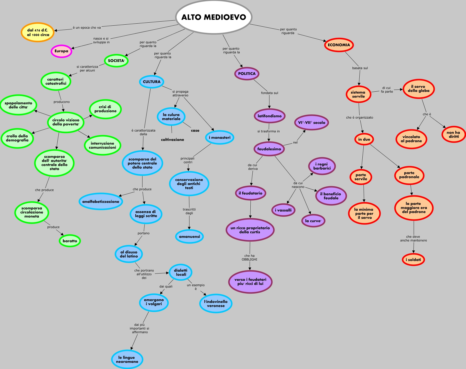 Questa Cmap, creata con IHMC CmapTools, contiene informazioni relative a: VALTORTA-ALTOMEDIOEVO, il feudatario ???? un ricco proprietario della curtis, ALTO MEDIOEVO nasce e si sviluppa in Europa, feudalesimo da cui deriva il feudatario, feudalesimo da cui nascono la curve', scomparsa del potere centrale dello stato che produce analfabetizzazione, la culura materiale ???? coltivazione, parte padronale ???? la parte maggiore era del padrone, il servo della gleba che è vincolato al padrone, circolo vizioso della poverta' ???? crisi di produzione, ALTO MEDIOEVO per quanto riguarda la SOCIETA', ALTO MEDIOEVO per quanto riguarda ECONOMIA, dialetti locali dai quali emergono i volgari, ALTO MEDIOEVO è un epoca che va dal 476 d.C. al 1000 circa, circolo vizioso della poverta' ???? crollo della demografia, circolo vizioso della poverta' ???? scomparsa dell' autorita' centrale dello stato, feudalesimo da cui nascono i vassalli, assenza di leggi scritte portano al disuso del latino, in due ???? parte servile, sistema servile che è organizzato in due, CULTURA si propaga attraverso i monasteri