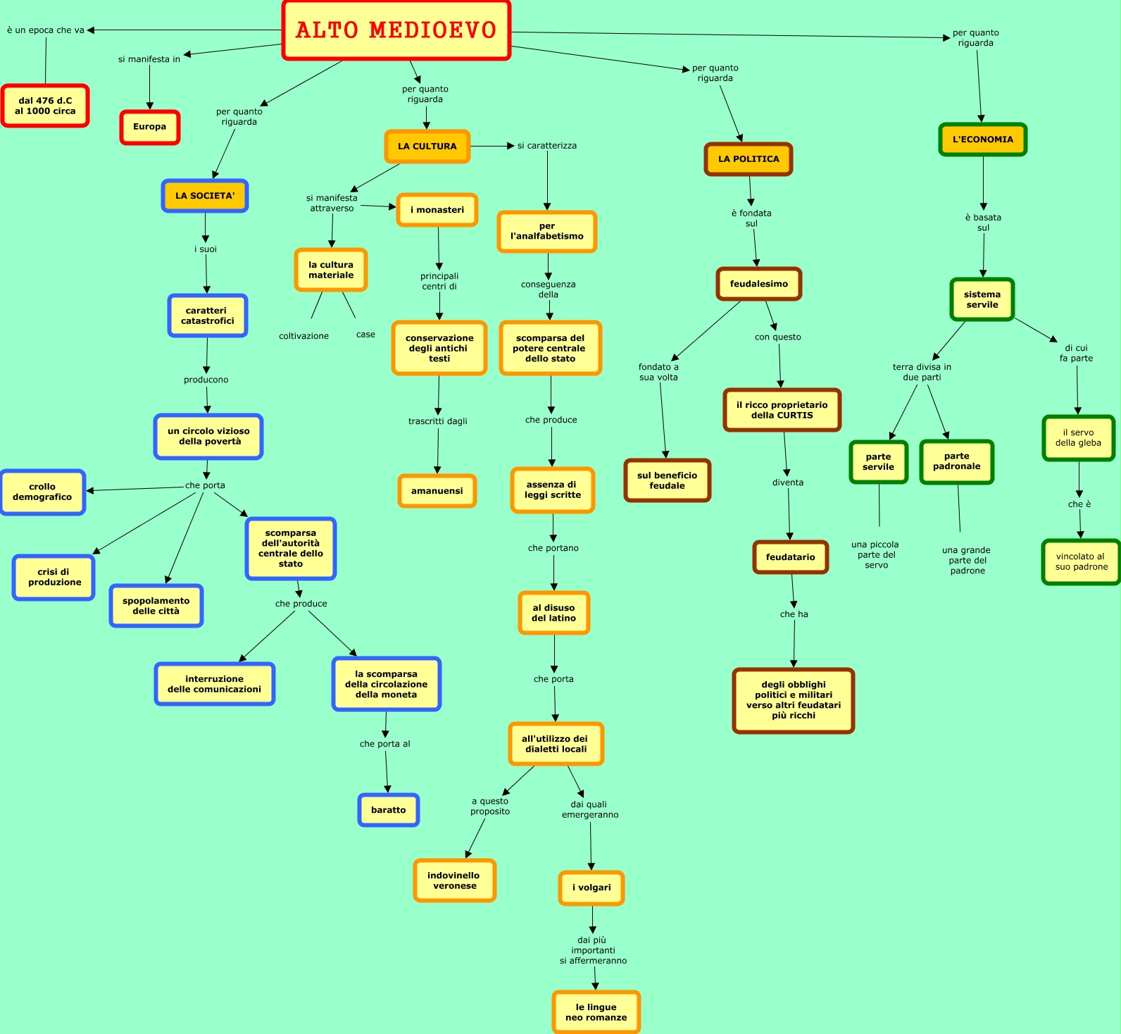 Questa Cmap, creata con IHMC CmapTools, contiene informazioni relative a: Serafin_Altomedioevo, un circolo vizioso della povertà che porta scomparsa dell'autorità centrale dello stato, sistema servile di cui fa parte il servo della gleba, il ricco proprietario della CURTIS diventa feudatario, sistema servile terra divisa in due parti parte padronale, ALTO MEDIOEVO è un epoca che va dal 476 d.C al 1000 circa, caratteri catastrofici producono un circolo vizioso della povertà, un circolo vizioso della povertà che porta crisi di produzione, un circolo vizioso della povertà che porta spopolamento delle città, ALTO MEDIOEVO si manifesta in Europa, all'utilizzo dei dialetti locali a questo proposito indovinello veronese, LA POLITICA è fondata sul feudalesimo, parte padronale ???? una grande parte del padrone, all'utilizzo dei dialetti locali dai quali emergeranno i volgari, feudalesimo con questo il ricco proprietario della CURTIS, feudalesimo fondato a sua volta sul beneficio feudale, ALTO MEDIOEVO per quanto riguarda LA POLITICA, i monasteri principali centri di conservazione degli antichi testi, LA CULTURA si manifesta attraverso i monasteri, ALTO MEDIOEVO per quanto riguarda L'ECONOMIA, scomparsa dell'autorità centrale dello stato che produce la scomparsa della circolazione della moneta