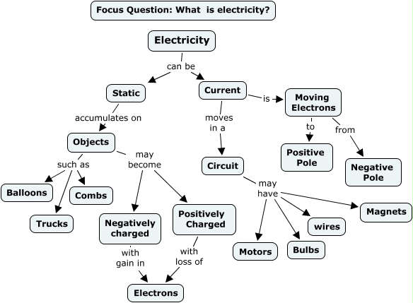This Concept Map, created with IHMC CmapTools, has information related to: Elem school cmap, Objects such as Trucks, Static accumulates on Objects, Circuit may have wires, Moving Electrons to Positive Pole, Objects may become Positively Charged, Positively Charged with loss of Electrons, Circuit may have Bulbs, Circuit may have Magnets, Objects such as Combs, Electricity can be Current, Electricity can be Static, Current moves in a Circuit, Objects such as Balloons, Moving Electrons from Negative Pole, Current is Moving Electrons, Circuit may have Motors, Negatively charged with gain in Electrons, Objects may become Negatively charged