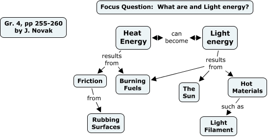 This Concept Map, created with IHMC CmapTools, has information related to: Heat and Light Energy, pp 255-260, Friction from Rubbing Surfaces, Light energy results from Hot Materials, Light energy results from Burning Fuels, Hot Materials such as Light Filament, Heat Energy results from Burning Fuels, Light energy results from The Sun, Heat Energy results from Friction, Heat Energy can become Light energy