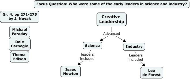 This Concept Map, created with IHMC CmapTools, has information related to: Creative leadership, pp 271-275 Skeleton + concepts, Creative Leadership Advanced Science, Creative Leadership Advanced Industry, Industry Leaders included Lee de Forest, Science leaders included Isaac Newton