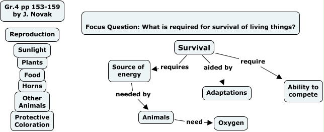 This Concept Map, created with IHMC CmapTools, has information related to: Survival, pp 153-159 Skeleton + concepts, Source of energy needed by Animals, Animals need Oxygen, Survival require Ability to compete, Survival aided by Adaptations, Survival requires Source of energy
