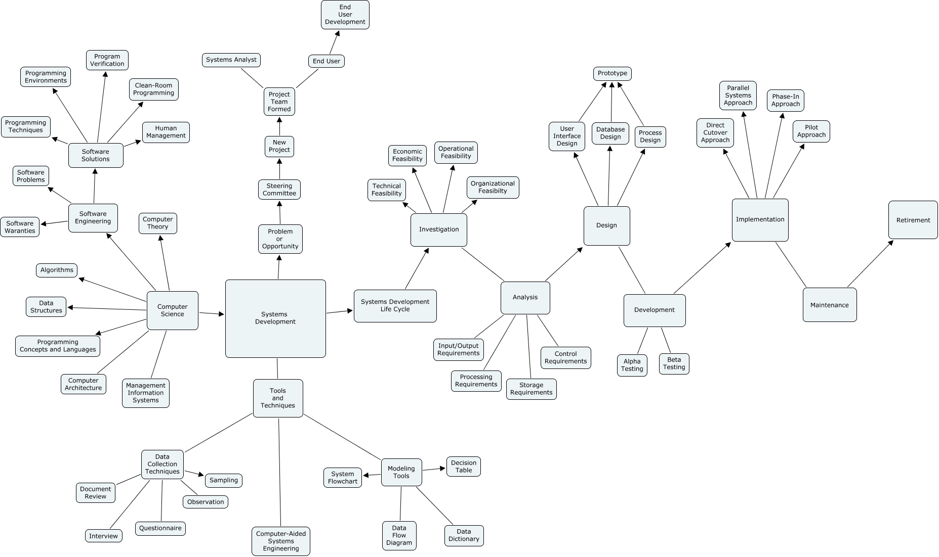 This Concept Map, created with IHMC CmapTools, has information related to: Ben Miller, Software Solutions Programming Environments, Development Alpha Testing, Systems Development Tools and Techniques, Design Process Design, Software Solutions Clean-Room Programming, Systems Development Life Cycle Investigation, Investigation Operational Feasibility, Tools and Techniques Computer-Aided Systems Engineering, Design Development, Modeling Tools Data Flow Diagram, Systems Development Problem or Opportunity, Development Beta Testing, User Interface Design Prototype, Investigation Analysis, Investigation Technical Feasibility, Data Collection Techniques Observation, Systems Analyst Project Team Formed, Investigation Organizational Feasibilty, Software Engineering Software Problems, End User End User Development