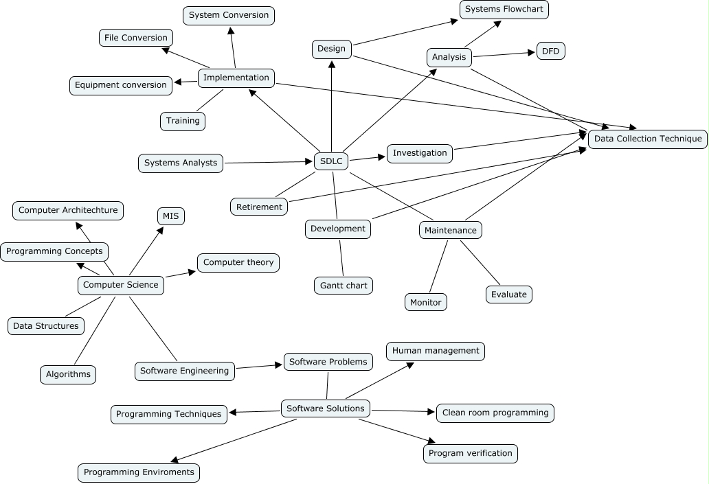 This Concept Map, created with IHMC CmapTools, has information related to: 4, Software Problems Software Solutions, Software Solutions Programming Enviroments, SDLC Analysis, Development Data Collection Technique, Design Data Collection Technique, SDLC Maintenance, Analysis DFD, Investigation Data Collection Technique, SDLC Retirement, Computer Science Computer theory, SDLC Implementation, Computer Science MIS, Implementation File Conversion, Retirement Data Collection Technique, Analysis Data Collection Technique, Development Gantt chart, Maintenance Monitor, Software Engineering Software Problems, Implementation Training, SDLC Investigation
