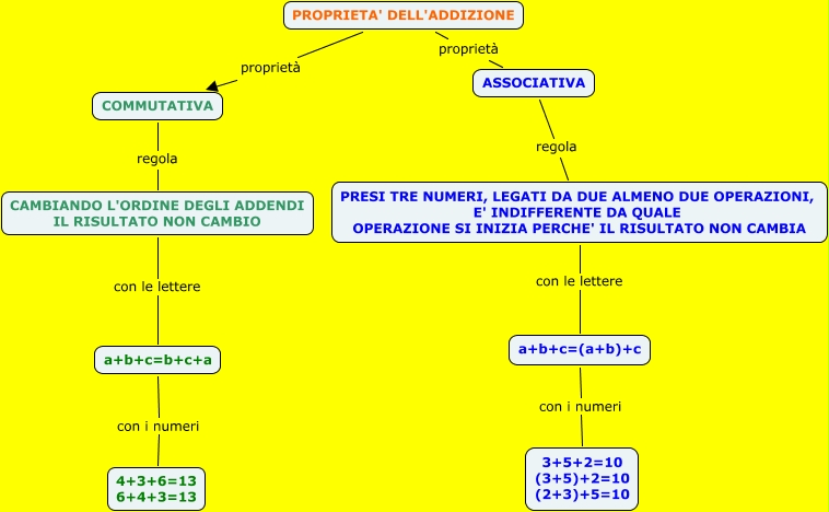 Questa Cmap, creata con IHMC CmapTools, contiene informazioni relative a: Botturi Chiara e Francesca Crola, PROPRIETA' DELL'ADDIZIONE proprietà ASSOCIATIVA, PROPRIETA' DELL'ADDIZIONE proprietà COMMUTATIVA, ASSOCIATIVA regola PRESI TRE NUMERI, LEGATI DA DUE ALMENO DUE OPERAZIONI, E' INDIFFERENTE DA QUALE OPERAZIONE SI INIZIA PERCHE' IL RISULTATO NON CAMBIA, a+b+c=(a+b)+c con i numeri 3+5+2=10 (3+5)+2=10 (2+3)+5=10, CAMBIANDO L'ORDINE DEGLI ADDENDI IL RISULTATO NON CAMBIO con le lettere a+b+c=b+c+a, a+b+c=b+c+a con i numeri 4+3+6=13 6+4+3=13, PRESI TRE NUMERI, LEGATI DA DUE ALMENO DUE OPERAZIONI, E' INDIFFERENTE DA QUALE OPERAZIONE SI INIZIA PERCHE' IL RISULTATO NON CAMBIA con le lettere a+b+c=(a+b)+c, COMMUTATIVA regola CAMBIANDO L'ORDINE DEGLI ADDENDI IL RISULTATO NON CAMBIO