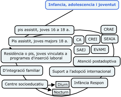 Este Cmap, tiene información relacionada con: Infàncvia i adolescencia, Centre socioeducatiu ???? Nocturn, Infancia, adolescencia i joventut ???? Pis assistit, joves majors 18 a., Centre socioeducatiu ???? Dïurn