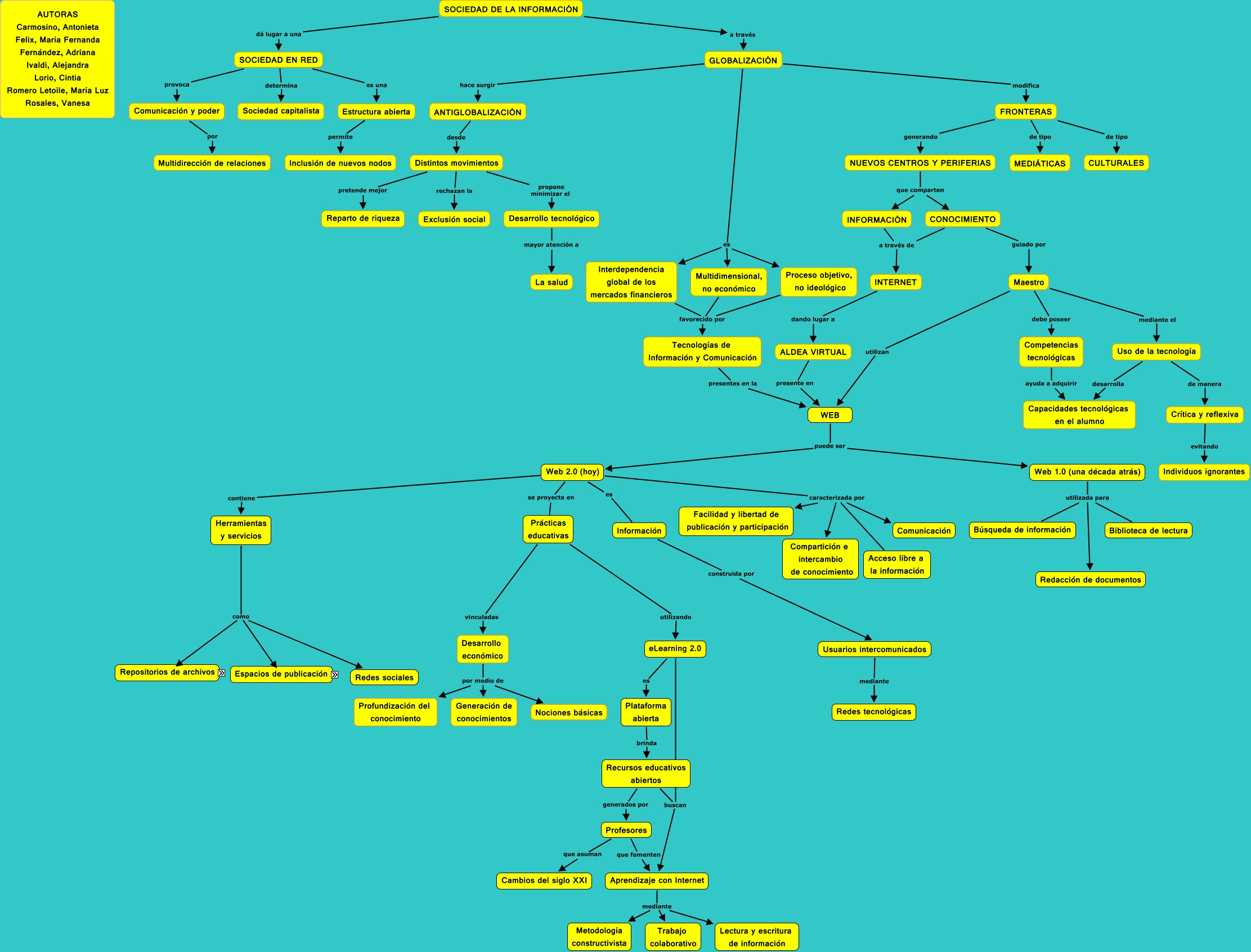 Este Cmap, tiene información relacionada con: Mapa INTEGRADOR(modificado profes), Desarrollo económico por medio de Profundización del conocimiento, Web 1.0 (una década atrás) utilizada para Biblioteca de lectura, Competencias tecnológicas ayuda a adquirir Capacidades tecnológicas en el alumno, CONOCIMIENTO guiado por Maestro, Web 2.0 (hoy) caracterizada por Compartición e intercambio de conocimiento, CONOCIMIENTO a través de INTERNET, Estructura abierta permite Inclusión de nuevos nodos, Espacios de publicación por ejemplo Blog, Uso de la tecnología de manera Crítica y reflexiva, Comunicación y poder por Multidirección de relaciones, NUEVOS CENTROS Y PERIFERIAS que comparten CONOCIMIENTO, Aprendizaje con Internet mediante Trabajo colaborativo, ALDEA VIRTUAL presente en WEB, Web 2.0 (hoy) caracterizada por Acceso libre a la información, Espacios de publicación por ejemplo Wiki, Web 1.0 (una década atrás) utilizada para Redacción de documentos, Web 2.0 (hoy) caracterizada por Comunicación, Desarrollo económico por medio de Generación de conocimientos, Maestro debe poseer Competencias tecnológicas, Recursos educativos abiertos buscan Aprendizaje con Internet