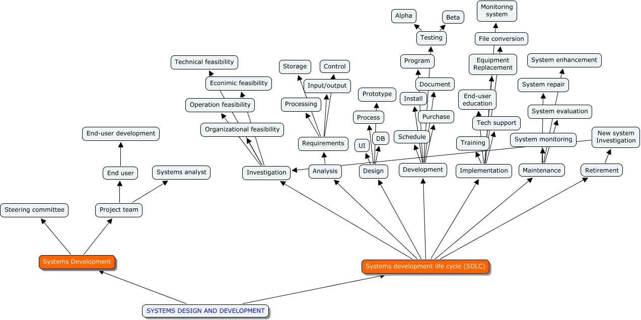 This Concept Map, created with IHMC CmapTools, has information related to: Christopher Morris, Implementation Monitoring system, Analysis Requirements, Project team End user, Project team Systems analyst, Requirements Control, Systems development life cycle (SDLC) Retirement, Development Purchase, Design DB, Development Testing, Implementation Training, Investigation Operation feasibility, Systems development life cycle (SDLC) Implementation, Systems development life cycle (SDLC) Maintenance, Development Program, Systems development life cycle (SDLC) Design, Systems development life cycle (SDLC) Analysis, Development Document, Maintenance System monitoring, Design Process, Implementation Equipment Replacement