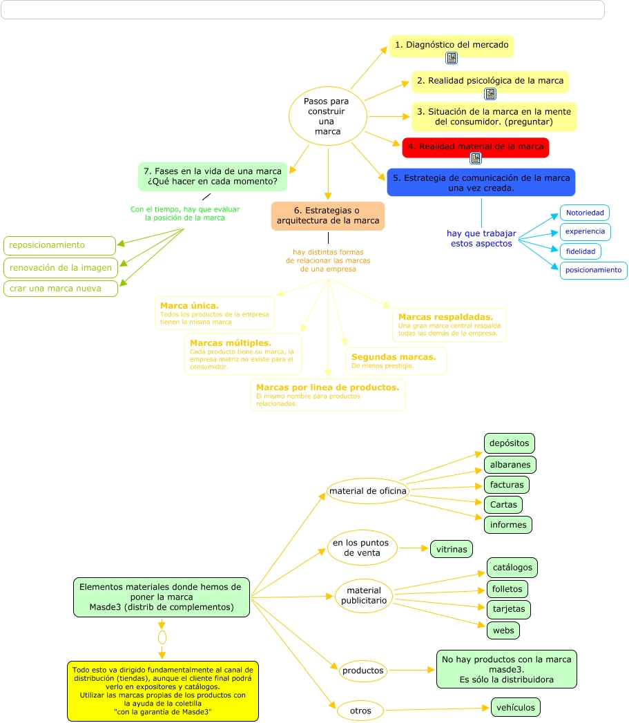 Este Cmap, tiene información relacionada con: Pasos_para_construir_una_marca, Elementos materiales donde hemos de poner la marca Masde3 (distrib de complementos) material publicitario tarjetas, 6. Estrategias o arquitectura de la marca hay distintas formas de relacionar las marcas de una empresa Marca única. Todos los productos de la empresa tienen la misma marca, Elementos materiales donde hemos de poner la marca Masde3 (distrib de complementos) material publicitario webs, 5. Estrategia de comunicación de la marca una vez creada. hay que trabajar estos aspectos fidelidad, 6. Estrategias o arquitectura de la marca hay distintas formas de relacionar las marcas de una empresa Marcas por linea de productos. El mismo nombre para productos relacionados., 6. Estrategias o arquitectura de la marca hay distintas formas de relacionar las marcas de una empresa Segundas marcas. De menos prestigio., Elementos materiales donde hemos de poner la marca Masde3 (distrib de complementos) material de oficina depósitos, Elementos materiales donde hemos de poner la marca Masde3 (distrib de complementos) material publicitario folletos, 7. Fases en la vida de una marca ¿Qué hacer en cada momento? Con el tiempo, hay que evaluar la posición de la marca reposicionamiento, Elementos materiales donde hemos de poner la marca Masde3 (distrib de complementos) material publicitario catálogos, 7. Fases en la vida de una marca ¿Qué hacer en cada momento? Con el tiempo, hay que evaluar la posición de la marca crar una marca nueva, 6. Estrategias o arquitectura de la marca hay distintas formas de relacionar las marcas de una empresa Marcas respaldadas. Una gran marca central respalda todas las demás de la empresa., 7. Fases en la vida de una marca ¿Qué hacer en cada momento? Con el tiempo, hay que evaluar la posición de la marca renovación de la imagen, Elementos materiales donde hemos de poner la marca Masde3 (distrib de complementos) otros vehículos, 6. Estrategias o arquitectura de la marca hay distintas formas de relacionar las marcas de una empresa Marcas múltiples. Cada producto tiene su marca, la empresa matriz no existe para el consumidor., Elementos materiales donde hemos de poner la marca Masde3 (distrib de complementos) material de oficina informes, Elementos materiales donde hemos de poner la marca Masde3 (distrib de complementos) productos No hay productos con la marca masde3. Es sólo la distribuidora, Elementos materiales donde hemos de poner la marca Masde3 (distrib de complementos) material de oficina facturas, 5. Estrategia de comunicación de la marca una vez creada. hay que trabajar estos aspectos experiencia, 5. Estrategia de comunicación de la marca una vez creada. hay que trabajar estos aspectos posicionamiento