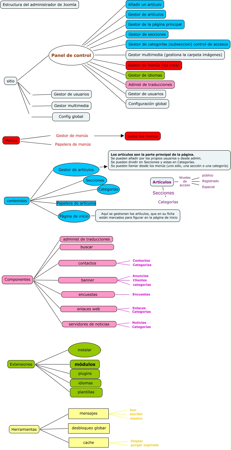 Este Cmap, tiene información relacionada con: ArbolMenusJoomla, Extensiones instalar, sitio Panel de control Gestor de idiomas, Componentes administ de traducciones, sitio Gestor de usuarios, Artículos Secciones Categorías, Artículos Niveles de acceso Registrado, Componentes encuestas Encuestas, sitio Config global, Componentes banner categorías, contenidos Secciones, sitio Panel de control Añadir un artículo, Componentes contactos Contactos, Componentes contactos Categorías, sitio Panel de control Gestor de artículos, contenidos Papelera de artículos, Menus Gestor de menús todos los menús, Herramientas mensajes leer, Herramientas cache purgar expirada, Artículos Niveles de acceso Especial, Componentes servidores de noticias Noticias