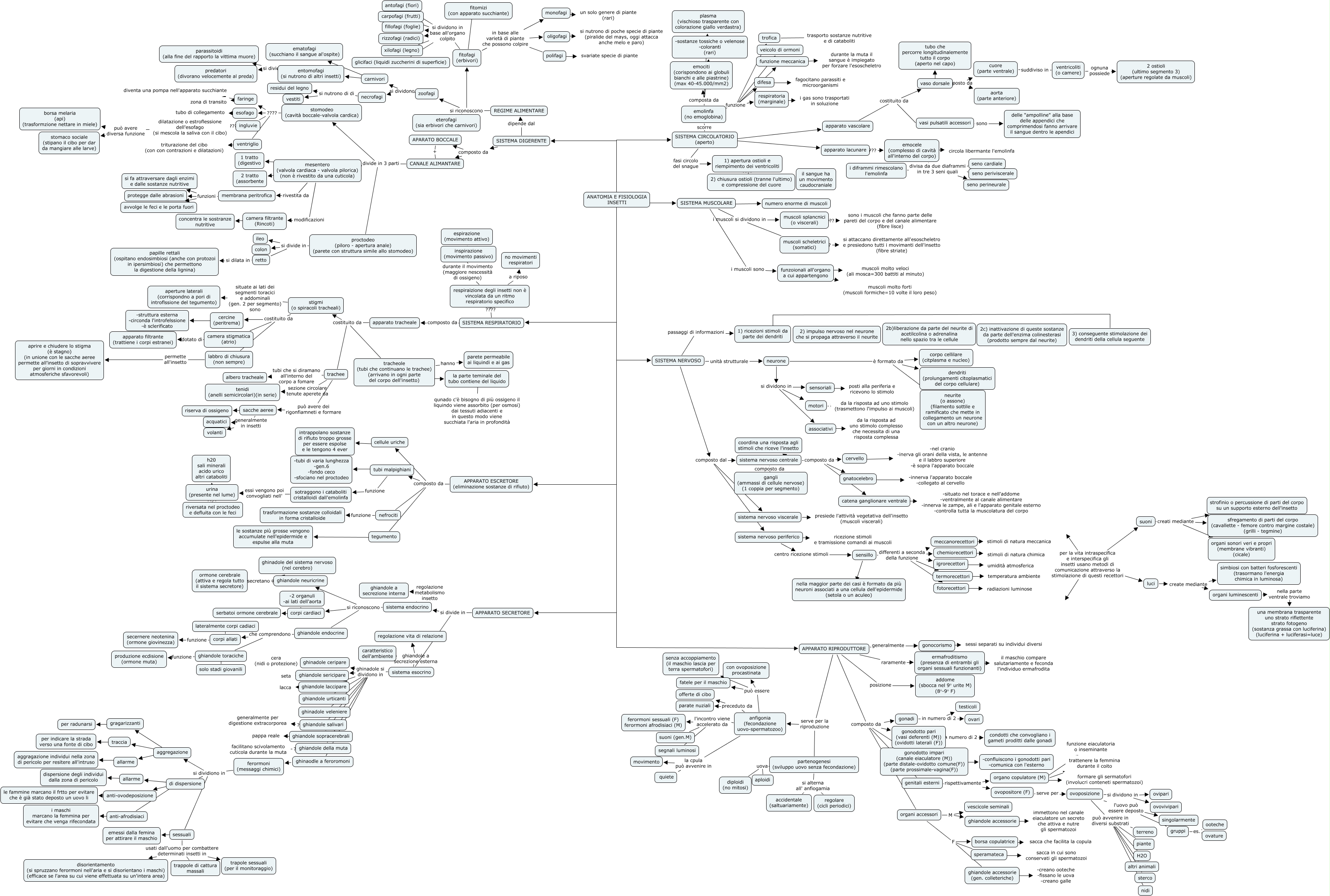 Questa Cmap, creata con IHMC CmapTools, contiene informazioni relative a: morfologia, ghiandole toraciche ???? solo stadi giovanili, luci create mediante simbiosi con batteri fosforescenti (trasormano l'energia chimica in luminosa), termorecettori ???? temperatura ambiente, APPARATO SECRETORE si divide in sistema endocrino, ANATOMIA E FISIOLOGIA INSETTI ???? SISTEMA NERVOSO, 2) chiusura ostioli (tranne l'ultimo) e compressione del cuore ???? il sangue ha un movimento caudocraniale, ovoposizione può avvenire in diversi substrati altri animali, CANALE ALIMANTARE si divide in 3 parti proctodeo (piloro - apertura anale) (parete con struttura simile allo stomodeo), fitofagi (erbivori) si dividono in base all'organo colpito rizzofagi (radici), muscoli scheletrici (somatici) ???? si attaccano direttamente all'esoscheletro e presiedono tutti i movimanti dell'insetto (fibre striate), zoofagi si dividono in necrofagi, ovoposizione l'uovo può essere deposto singolarmente, APPARATO RIPRODUTTORE raramente ermafroditismo (presenza di entrambi gli organi sessuali funzionanti), fitofagi (erbivori) si dividono in base all'organo colpito fillofagi (foglie), sistema endocrino si riconoscono ghiandole neuricrine, APPARATO RIPRODUTTORE composto da gonodotto impari (canale eiaculatore (M)) (parte distale-ovidotto comune(F)) (parte prossimale-vagina(F)), corpi allati ???? lateralmente corpi cadiaci, SISTEMA MUSCOLARE i muscoli sono funzoionali all'organo a cui appartengono, SISTEMA NERVOSO passaggi di informazioni 1) ricezioni stimoli da parte dei dendriti, sistema esocrino ghinadole si dividono in ghiandole urticanti
