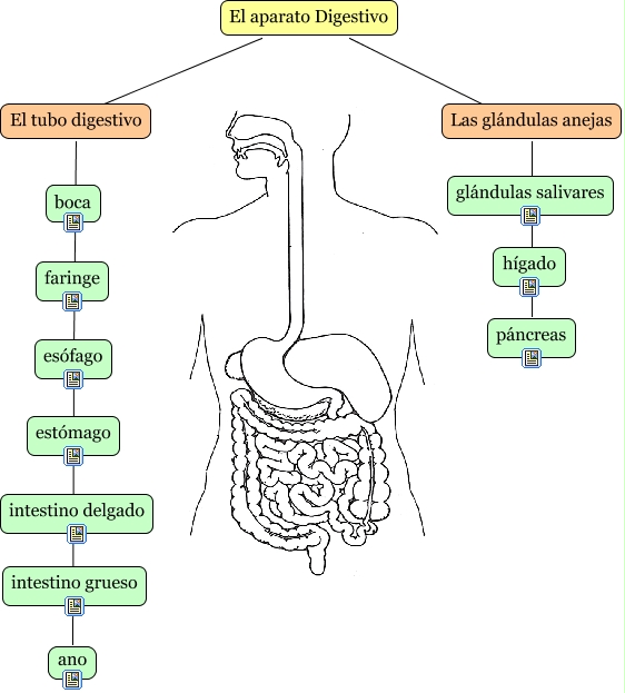 Este Cmap, tiene información relacionada con: Aparato Digestivo, El aparato Digestivo ???? El tubo digestivo, El tubo digestivo ???? ano, El aparato Digestivo ???? Las glándulas anejas, El aparato Digestivo ???? Las glándulas anejas, Las glándulas anejas ???? páncreas