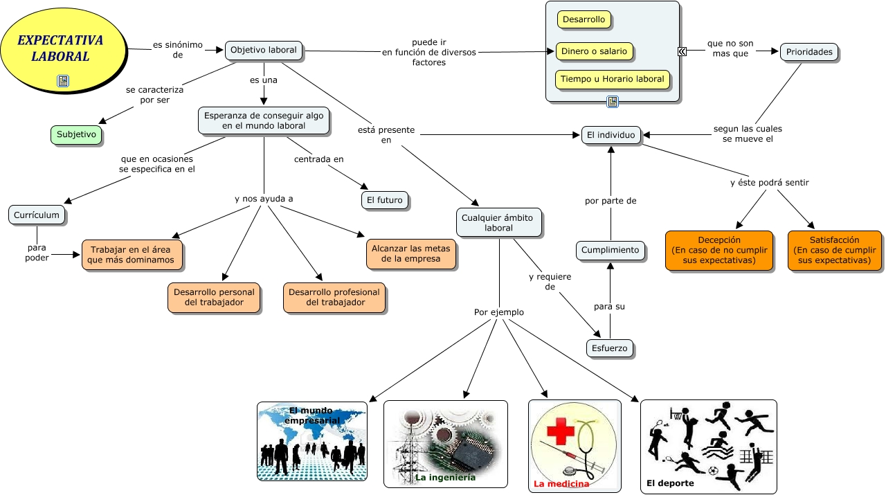 Este Cmap, tiene información relacionada con: SIO practica 1, Esperanza de conseguir algo en el mundo laboral centrada en El futuro, EXPECTATIVA LABORAL es sinónimo de Objetivo laboral, Esperanza de conseguir algo en el mundo laboral y nos ayuda a Desarrollo personal del trabajador, Cualquier ámbito laboral y requiere de Esfuerzo, Objetivo laboral se caracteriza por ser Subjetivo, Objetivo laboral es una Esperanza de conseguir algo en el mundo laboral, Cualquier ámbito laboral Por ejemplo La medicina, ???? que no son mas que Prioridades, Objetivo laboral está presente en Cualquier ámbito laboral, Currículum para poder Trabajar en el área que más dominamos, Esperanza de conseguir algo en el mundo laboral y nos ayuda a Alcanzar las metas de la empresa, Esperanza de conseguir algo en el mundo laboral y nos ayuda a Desarrollo profesional del trabajador, Cumplimiento por parte de El individuo, Esfuerzo para su Cumplimiento, Esperanza de conseguir algo en el mundo laboral que en ocasiones se especifica en el Currículum, El individuo y éste podrá sentir Satisfacción (En caso de cumplir sus expectativas), Cualquier ámbito laboral Por ejemplo El mundo empresarial, Prioridades segun las cuales se mueve el El individuo, Objetivo laboral está presente en El individuo, Objetivo laboral puede ir en función de diversos factores Dinero o salario