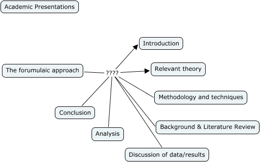 This Concept Map, created with IHMC CmapTools, has information related to: Academic Presentations, The forumulaic approach ???? Methodology and techniques, The forumulaic approach ???? Discussion of data/results, The forumulaic approach ???? Background & Literature Review, The forumulaic approach ???? Conclusion, The forumulaic approach ???? Introduction, The forumulaic approach ???? Relevant theory, The forumulaic approach ???? Analysis