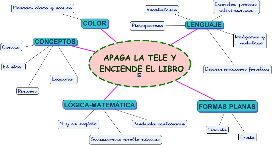 Este Cmap, tiene información relacionada con: apaga la tele y enciende el libro def, APAGA LA TELE Y ENCIENDE EL LIBRO CONCEPTOS El otro, APAGA LA TELE Y ENCIENDE EL LIBRO CONCEPTOS Rincón, APAGA LA TELE Y ENCIENDE EL LIBRO LENGUAJE Cuentos, poesías, adivinanzas..., APAGA LA TELE Y ENCIENDE EL LIBRO LÓGICA-MATEMÁTICA 9 y su regleta, APAGA LA TELE Y ENCIENDE EL LIBRO LENGUAJE Pictogramas, APAGA LA TELE Y ENCIENDE EL LIBRO LÓGICA-MATEMÁTICA Producto cartesiano, APAGA LA TELE Y ENCIENDE EL LIBRO LENGUAJE Vocabulario, APAGA LA TELE Y ENCIENDE EL LIBRO COLOR Marrón claro y oscuro, APAGA LA TELE Y ENCIENDE EL LIBRO CONCEPTOS Esquina, APAGA LA TELE Y ENCIENDE EL LIBRO FORMAS PLANAS Óvalo, APAGA LA TELE Y ENCIENDE EL LIBRO LENGUAJE Imágenes y palabras, APAGA LA TELE Y ENCIENDE EL LIBRO LENGUAJE Discriminación fonética, APAGA LA TELE Y ENCIENDE EL LIBRO CONCEPTOS Centro, APAGA LA TELE Y ENCIENDE EL LIBRO FORMAS PLANAS Círculo, APAGA LA TELE Y ENCIENDE EL LIBRO LÓGICA-MATEMÁTICA Situaciones problemáticas