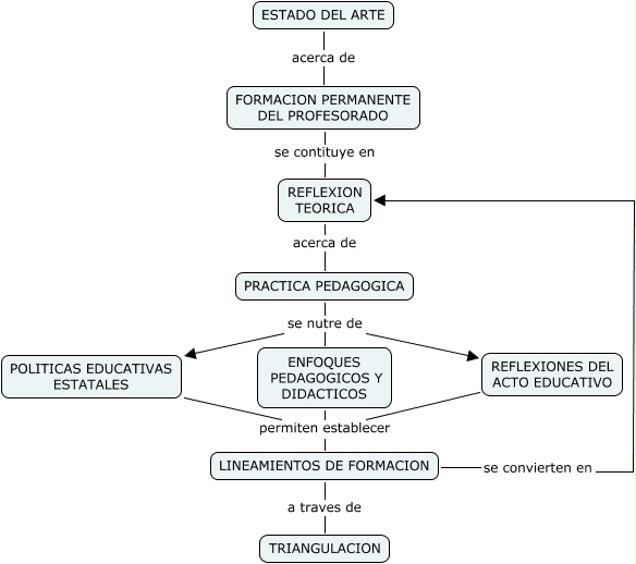 Este Cmap, tiene información relacionada con: FPP-1, ENFOQUES PEDAGOGICOS Y DIDACTICOS permiten establecer LINEAMIENTOS DE FORMACION, FORMACION PERMANENTE DEL PROFESORADO se contituye en REFLEXION TEORICA, REFLEXION TEORICA acerca de PRACTICA PEDAGOGICA, PRACTICA PEDAGOGICA se nutre de REFLEXIONES DEL ACTO EDUCATIVO, LINEAMIENTOS DE FORMACION a traves de TRIANGULACION, POLITICAS EDUCATIVAS ESTATALES permiten establecer LINEAMIENTOS DE FORMACION, LINEAMIENTOS DE FORMACION se convierten en REFLEXION TEORICA, PRACTICA PEDAGOGICA se nutre de POLITICAS EDUCATIVAS ESTATALES, PRACTICA PEDAGOGICA se nutre de ENFOQUES PEDAGOGICOS Y DIDACTICOS, ESTADO DEL ARTE acerca de FORMACION PERMANENTE DEL PROFESORADO, REFLEXIONES DEL ACTO EDUCATIVO permiten establecer LINEAMIENTOS DE FORMACION