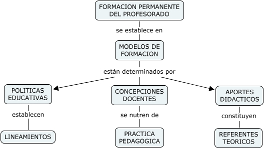 Este Cmap, tiene información relacionada con: FPP-2, MODELOS DE FORMACION están determinados por POLITICAS EDUCATIVAS, APORTES DIDACTICOS constituyen REFERENTES TEORICOS, MODELOS DE FORMACION están determinados por APORTES DIDACTICOS, CONCEPCIONES DOCENTES se nutren de PRACTICA PEDAGOGICA, POLITICAS EDUCATIVAS establecen LINEAMIENTOS, MODELOS DE FORMACION están determinados por CONCEPCIONES DOCENTES, FORMACION PERMANENTE DEL PROFESORADO se establece en MODELOS DE FORMACION