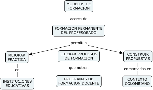 Este Cmap, tiene información relacionada con: FPP-3, FORMACION PERMANENTE DEL PROFESORADO permiten MEJORAR PRACTICA, FORMACION PERMANENTE DEL PROFESORADO permiten LIDERAR PROCESOS DE FORMACION, MODELOS DE FORMACION acerca de FORMACION PERMANENTE DEL PROFESORADO, CONSTRUIR PROPUESTAS enmarcadas en CONTEXTO COLOMBIANO, MEJORAR PRACTICA en INSTITUCIONES EDUCATIVAS, FORMACION PERMANENTE DEL PROFESORADO permiten CONSTRUIR PROPUESTAS, LIDERAR PROCESOS DE FORMACION que nutren PROGRAMAS DE FORMACION DOCENTE