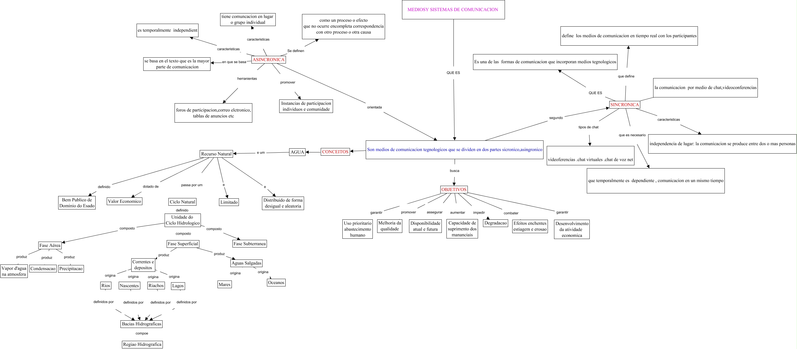 Este Cmap, tiene información relacionada con: MAPA CONCEPTUAL POLICIA, Fase Superficial produz Aguas Salgadas, ASINCRONICA caracteristicas es temporalmente independient, ASINCRONICA caracteristicas tiene comuncacion en lugar o grupo individual, Correntes e depositos origina Rios, Correntes e depositos origina Riachos, Recurso Natural e Distribuido de forma desigual e aleatoria, SINCRONICA QUE ES Es una de las formas de comunicacion que incorporan medios tegnologicos, SINCRONICA caracteristicas independencia de lugar: la comunicacion se produce entre dos o mas personas, SINCRONICA buscar la comunicacion por medio de chat,videoconferencias, Rios definidos por Bacias Hidrograficas, OBJETIVOS impedir Degradacao, AGUA e um Recurso Natural, MEDIOSY SISTEMAS DE COMUNICACION QUE ES Son medios de comunicacion tegnologicos que se dividen en dos partes sicronico,asingronico, Son medios de comunicacion tegnologicos que se dividen en dos partes sicronico,asingronico baseada CONCEITOS, Aguas Salgadas origina Mares, Correntes e depositos origina Nascentes, Unidade do Ciclo Hidrologico composto Fase Subterranea, Ciclo Natural definido Unidade do Ciclo Hidrologico, CONCEITOS definem AGUA, Fase Aérea produz Precipitacao