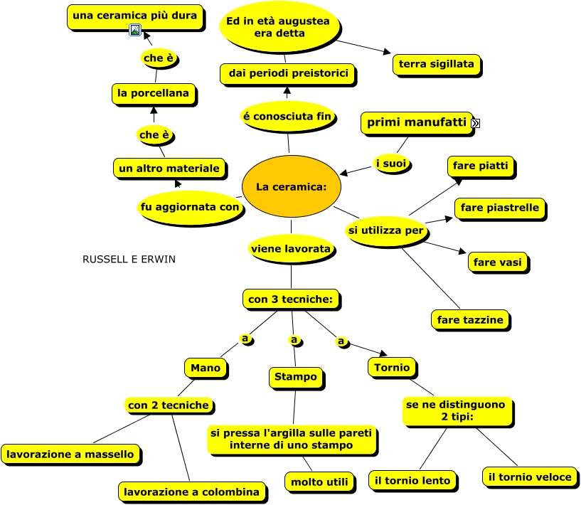 Questa Cmap, creata con IHMC CmapTools, contiene informazioni relative a: LA CERAMICA, Tornio se ne distinguono 2 tipi: il tornio lento, la porcellana che è una ceramica più dura, con 3 tecniche: a Tornio, La ceramica: fu aggiornata con un altro materiale, La ceramica: si utilizza per fare piatti, dai periodi preistorici Ed in età augustea era detta terra sigillata, La ceramica: é conosciuta fin dai periodi preistorici, con 3 tecniche: a Mano, La ceramica: si utilizza per fare tazzine, Stampo si pressa l'argilla sulle pareti interne di uno stampo molto utili, un altro materiale che è la porcellana, Mano con 2 tecniche lavorazione a colombina, Mano con 2 tecniche lavorazione a massello, La ceramica: si utilizza per fare vasi, con 3 tecniche: a Stampo, I primi manufatti sono del neolitico che si compongono con del vassellame cotto direttamente nel fuoco, Tornio se ne distinguono 2 tipi: il tornio veloce, primi manufatti i suoi La ceramica:, La ceramica: si utilizza per fare piastrelle, La ceramica: viene lavorata con 3 tecniche: