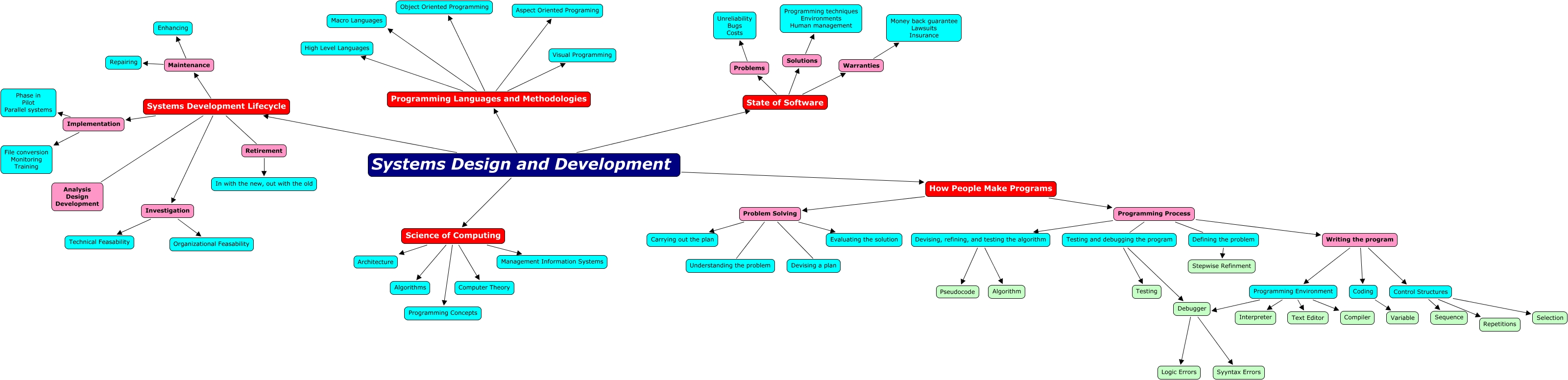 This Concept Map, created with IHMC CmapTools, has information related to: Team 06, Programming Process Devising, refining, and testing the algorithm, Testing and debugging the program Debugger, Systems Design and Development Programming Languages and Methodologies, Writing the program Coding, How People Make Programs Problem Solving, Programming Environment Compiler, Systems Design and Development How People Make Programs, Programming Languages and Methodologies Macro Languages, Defining the problem Stepwise Refinment, Devising, refining, and testing the algorithm Pseudocode, Systems Development Lifecycle Retirement, Control Structures Repetitions, Maintenance Repairing, Problem Solving Evaluating the solution, Science of Computing Architecture, Systems Development Lifecycle Implementation, Programming Languages and Methodologies Aspect Oriented Programing, Programming Environment Debugger, Systems Design and Development Systems Development Lifecycle, Writing the program Control Structures