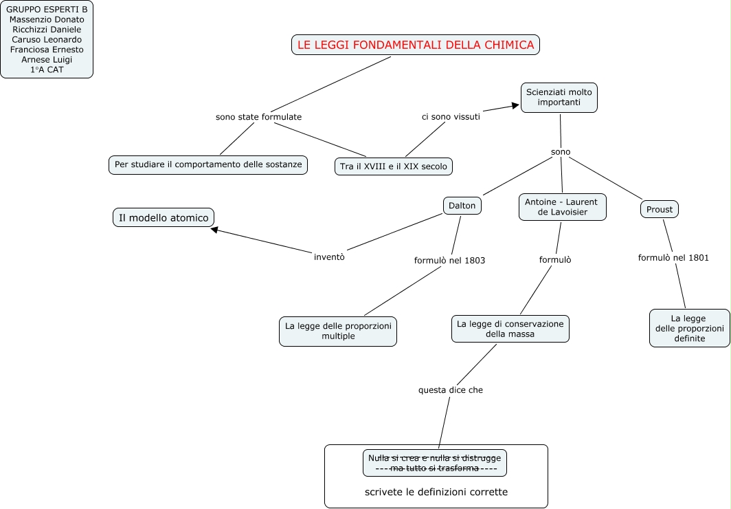 Questa Cmap, creata con IHMC CmapTools, contiene informazioni relative a: LEGGI FONDAMENTALI DELLA CHIMICA, Dalton inventò Il modello atomico, Antoine - Laurent de Lavoisier formulò La legge di conservazione della massa, Tra il XVIII e il XIX secolo ci sono vissuti Scienziati molto importanti, Scienziati molto importanti sono Dalton, Dalton formulò nel 1803 La legge delle proporzioni multiple, Proust formulò nel 1801 La legge delle proporzioni definite, Scienziati molto importanti sono Proust, LE LEGGI FONDAMENTALI DELLA CHIMICA sono state formulate Per studiare il comportamento delle sostanze, Scienziati molto importanti sono Antoine - Laurent de Lavoisier, LE LEGGI FONDAMENTALI DELLA CHIMICA sono state formulate Tra il XVIII e il XIX secolo, La legge di conservazione della massa questa dice che Nulla si crea e nulla si distrugge ma tutto si trasforma