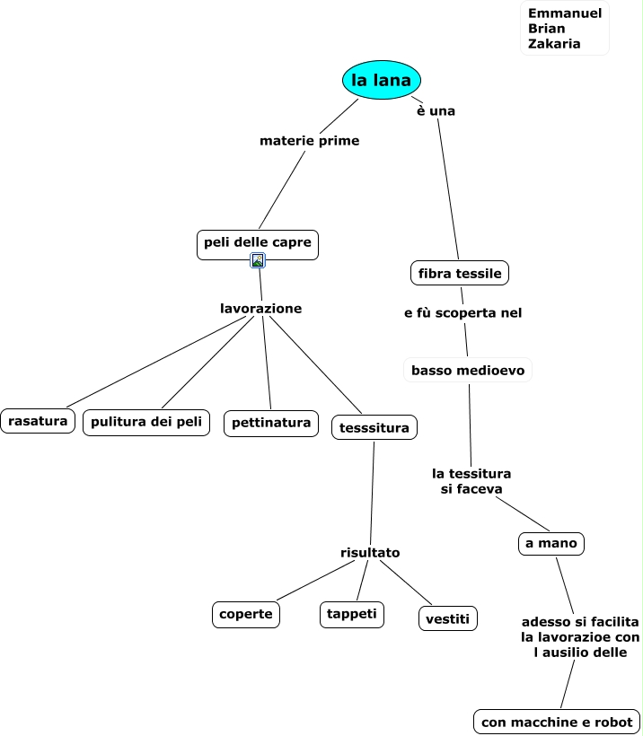 Questa Cmap, creata con IHMC CmapTools, contiene informazioni relative a: Mappa lana.cmap 1, tesssitura risultato coperte, basso medioevo la tessitura si faceva a mano, fibra tessile e fù scoperta nel basso medioevo, la lana è una fibra tessile, tesssitura risultato tappeti, peli delle capre lavorazione pettinatura, la lana materie prime peli delle capre, peli delle capre lavorazione pulitura dei peli, tesssitura risultato vestiti, peli delle capre lavorazione rasatura, a mano adesso si facilita la lavorazioe con l ausilio delle con macchine e robot, peli delle capre lavorazione tesssitura