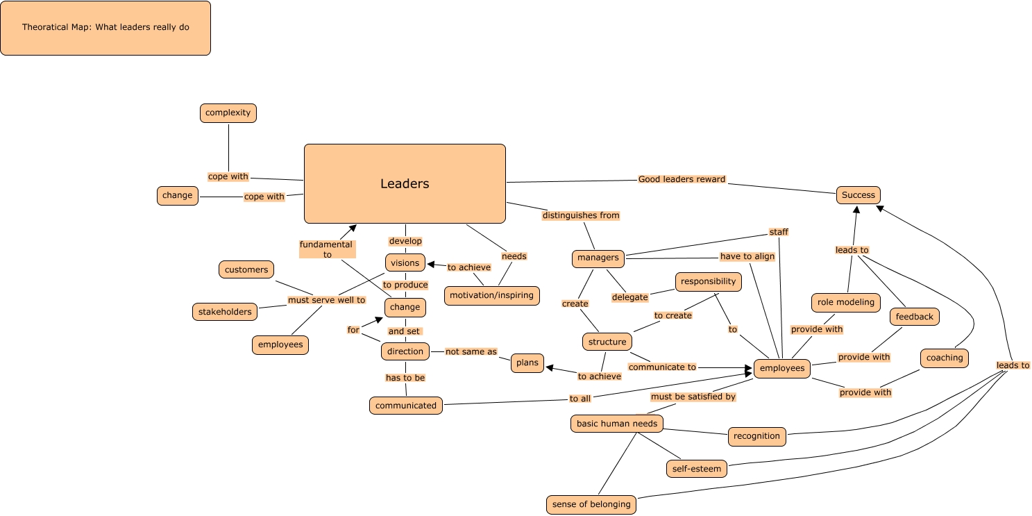Dieses mit IHMC CmapTools erstellte CMap hat Informationen bezüglich: leadership, visions must serve well to employees, coaching leads to Success, customers must serve well to employees, motivation/inspiring to achieve visions, change and set direction, structure communicate to employees, managers have to align employees, communicated to all employees, visions to produce change, stakeholders must serve well to employees, role modeling leads to Success, Leaders distinguishes from managers, sense of belonging leads to Success, feedback leads to Success, self-esteem leads to Success, direction has to be communicated, direction for change, responsibility to employees, structure to achieve plans, basic human needs ???? sense of belonging