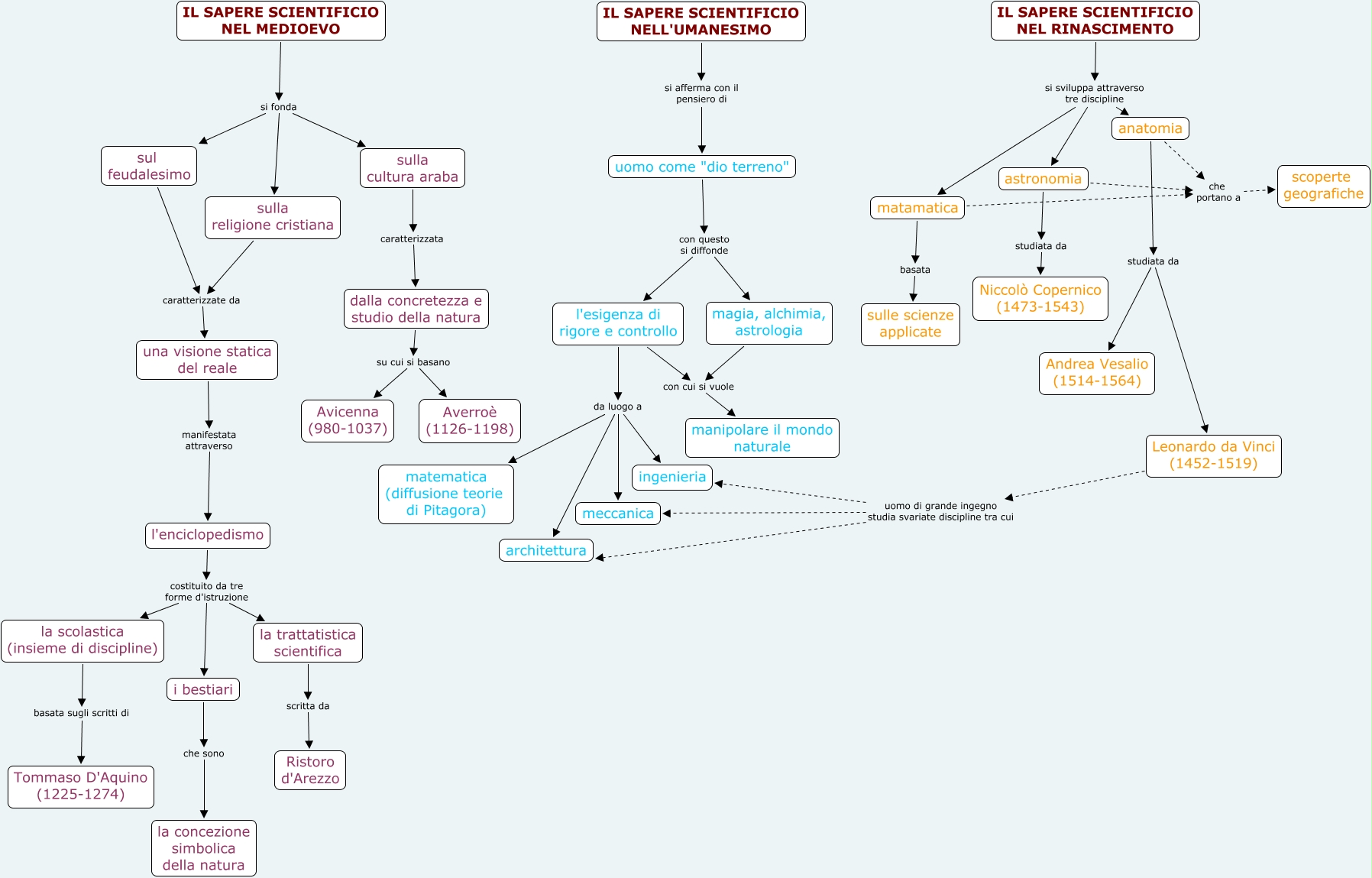 Questa Cmap, creata con IHMC CmapTools, contiene informazioni relative a: Serafin_saperiscientifici, l'esigenza di rigore e controllo da luogo a matematica (diffusione teorie di Pitagora), uomo come "dio terreno" con questo si diffonde l'esigenza di rigore e controllo, una visione statica del reale manifestata attraverso l'enciclopedismo, l'esigenza di rigore e controllo da luogo a meccanica, i bestiari che sono la concezione simbolica della natura, IL SAPERE SCIENTIFICIO NEL MEDIOEVO si fonda sulla cultura araba, IL SAPERE SCIENTIFICIO NELL'UMANESIMO si afferma con il pensiero di uomo come "dio terreno", magia, alchimia, astrologia con cui si vuole manipolare il mondo naturale, l'esigenza di rigore e controllo con cui si vuole manipolare il mondo naturale, l'esigenza di rigore e controllo da luogo a ingenieria, astronomia che portano a scoperte geografiche, anatomia studiata da Leonardo da Vinci (1452-1519), uomo come "dio terreno" con questo si diffonde magia, alchimia, astrologia, sul feudalesimo caratterizzate da una visione statica del reale, la trattatistica scientifica scritta da Ristoro d'Arezzo, l'enciclopedismo costituito da tre forme d'istruzione la trattatistica scientifica, la scolastica (insieme di discipline) basata sugli scritti di Tommaso D'Aquino (1225-1274), l'enciclopedismo costituito da tre forme d'istruzione i bestiari, l'enciclopedismo costituito da tre forme d'istruzione la scolastica (insieme di discipline), IL SAPERE SCIENTIFICIO NEL RINASCIMENTO si sviluppa attraverso tre discipline astronomia